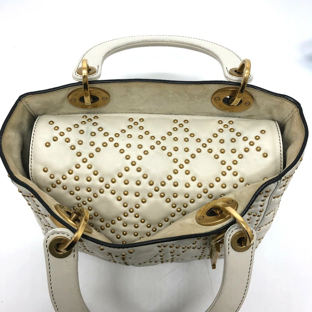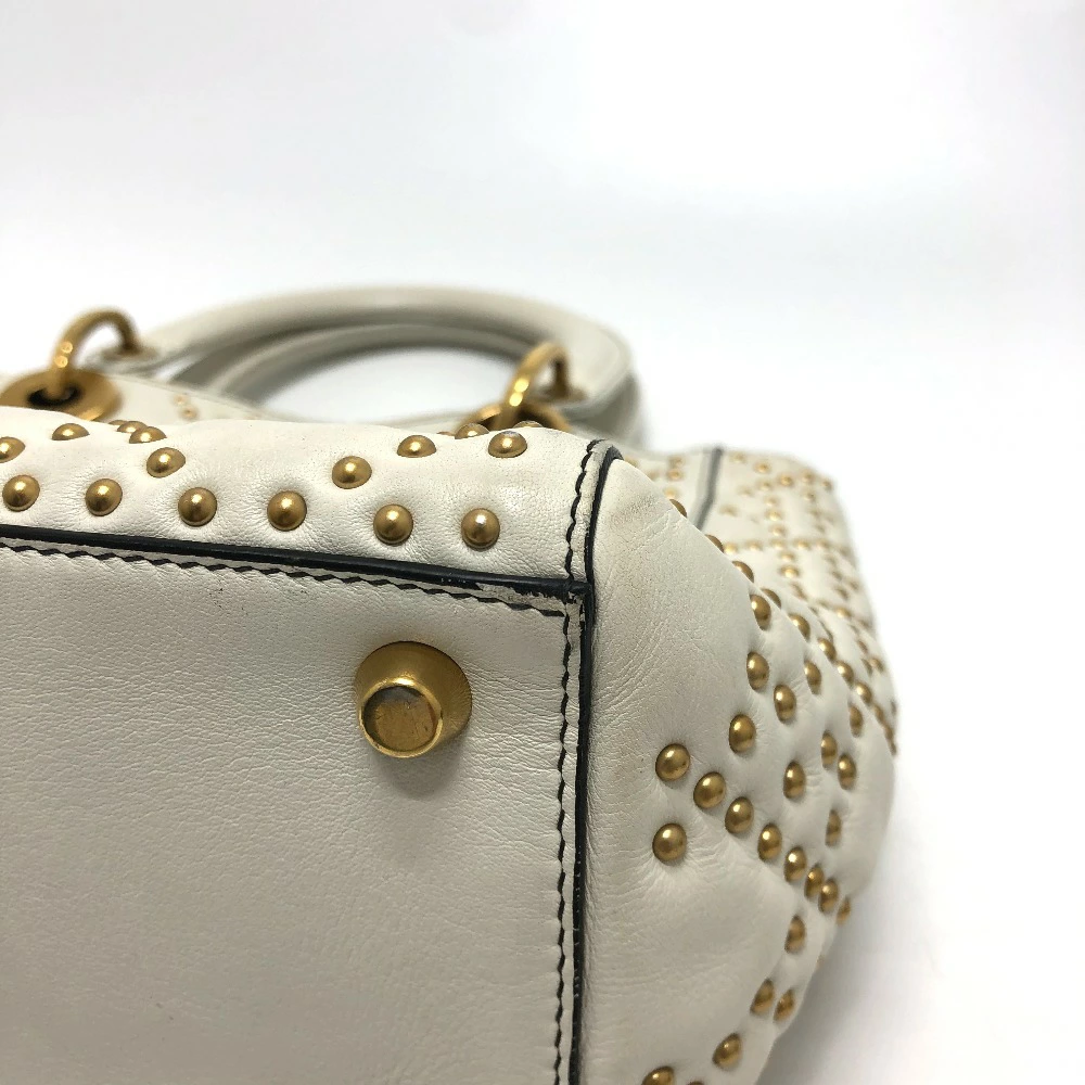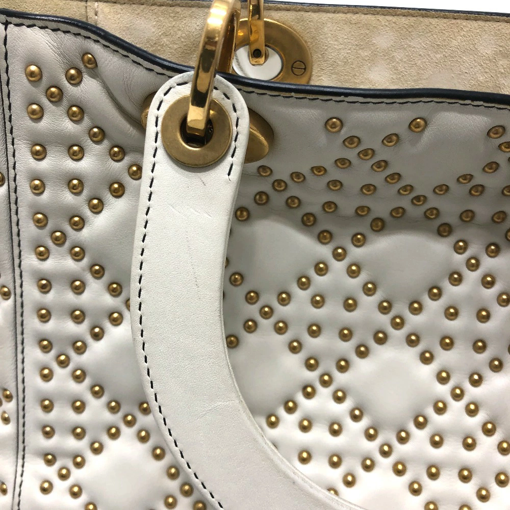 | 商品説明 | 定番人気のレディディオールです。可愛らしく、柔らかい印象のホワイトクリームカラー。上質なレザーにゴールドのスタッズが施されたラグジュアリーな逸品です。 |