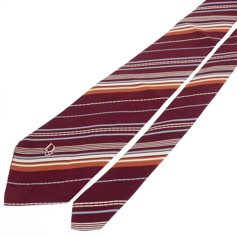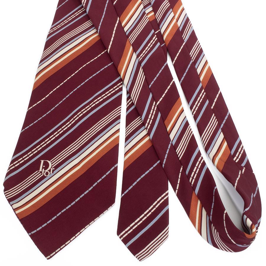 DIOR 領帶,寬領帶,印花領帶,男女通用,絲綢材質,紅色,酒紅色,米白色,橙色,淺藍色,商務休閒,條紋,Y2K,90年代,00年代,Logo,品牌,稀有,時尚,精美,S539
