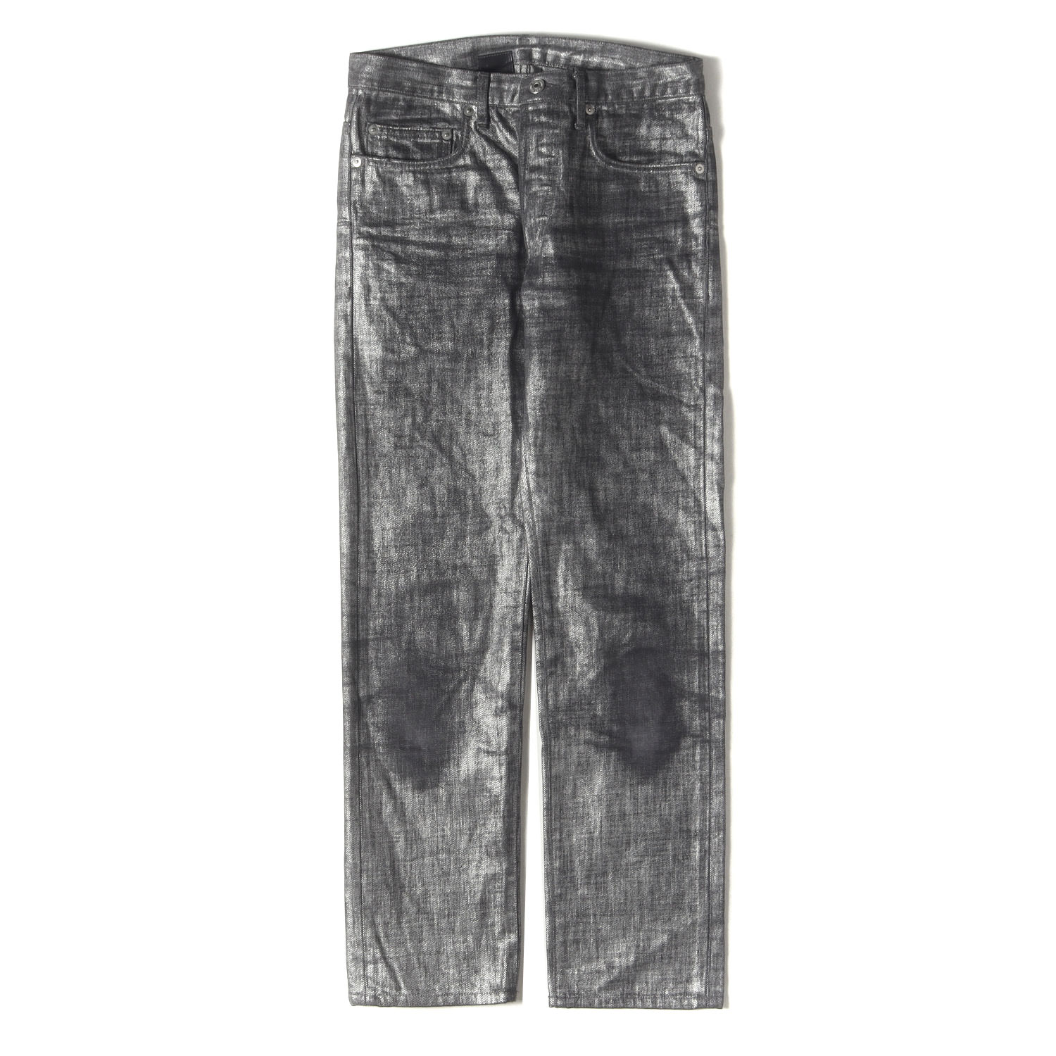 | 商品説明 | こちらはアーカイブアイテムのボタンフライデニムパンツです。シルバーのコーティング加工を施し、スリムストレートシルエットで仕上げた一本になります。 |