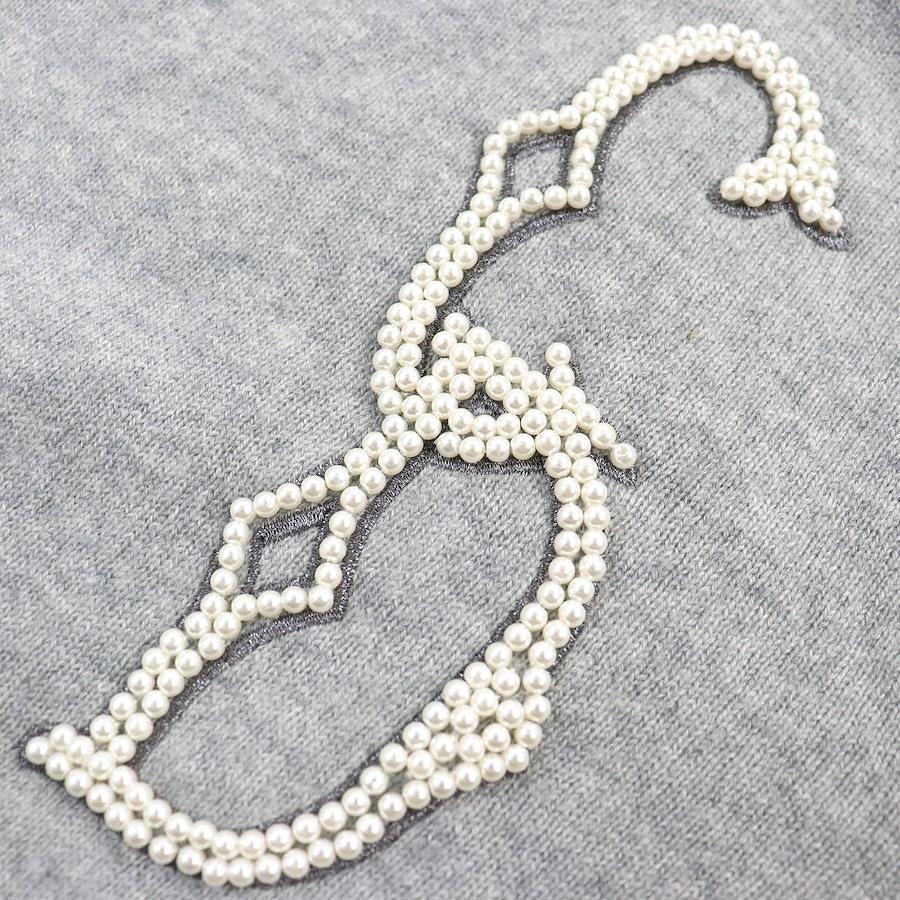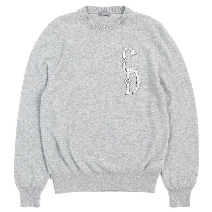 Dior HOMME Knit CD Interlace Long Sleeve Knit Sweater with F Pearls Gray Cashmere 343M640AT721