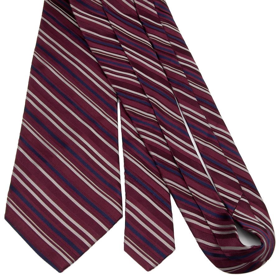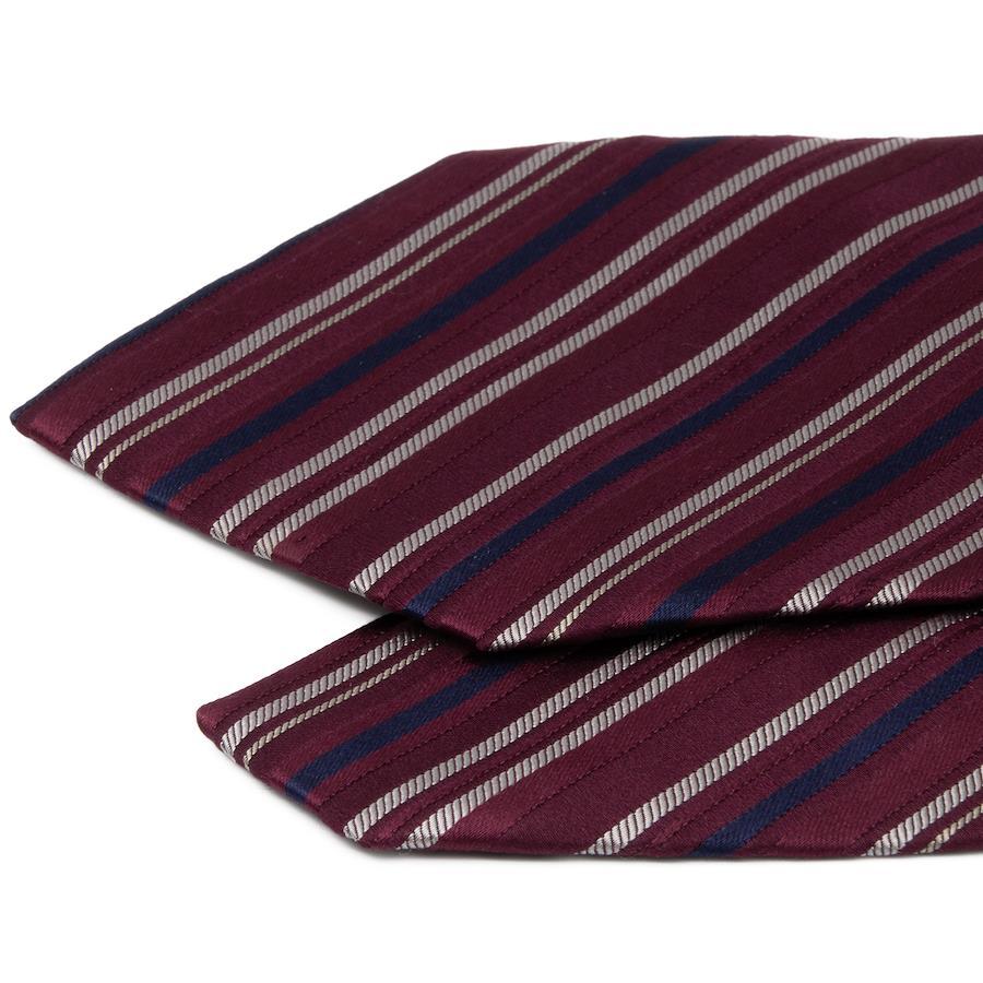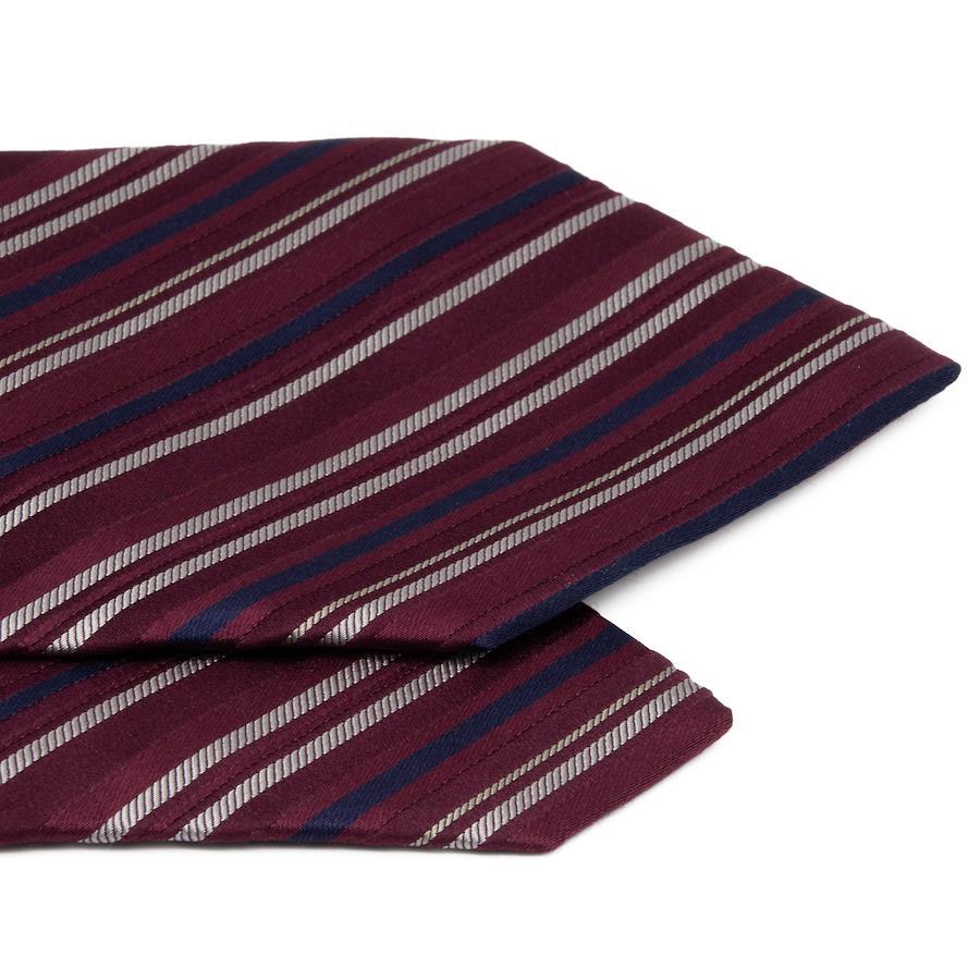 ワインレッドを基調とした地に、シルバーやネイビーのラインが走り、知的なリズムを刻みました。