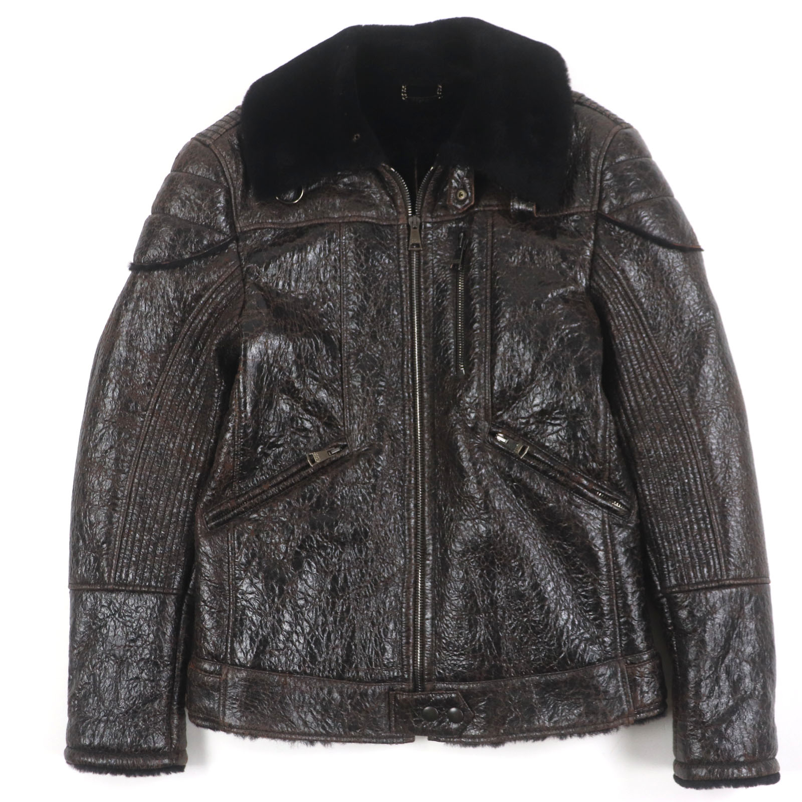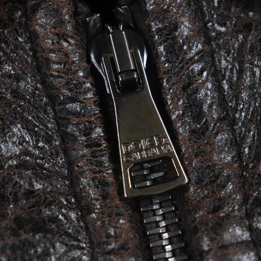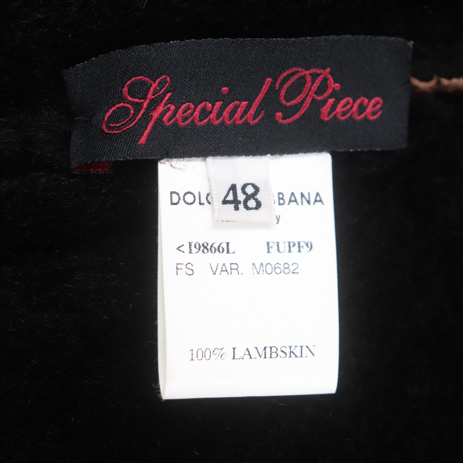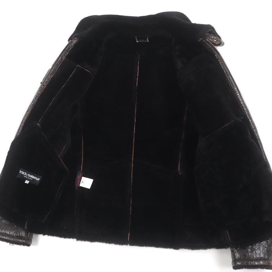 DOLCE&GABBANA Mouton Jacket with Black Tag, Zip-Up Flight Jacket, Dark Brown Lambskin, FUPF9