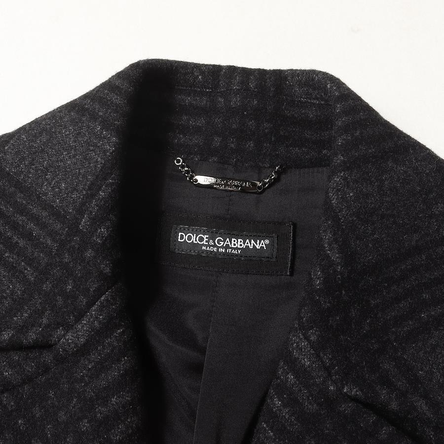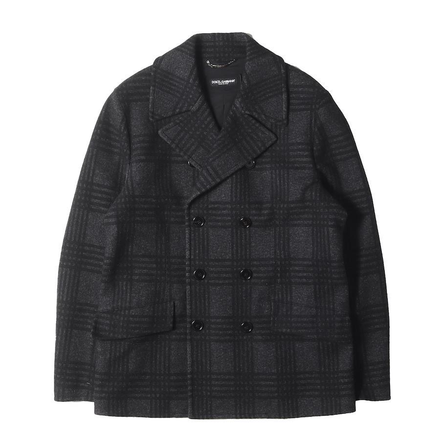 DOLCE & GABBANA Men's Melton Wool Check Pea Coat, Size 52, Charcoal Black, Made in Italy, Pre-owned, Excellent Condition, K4615