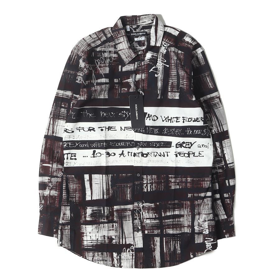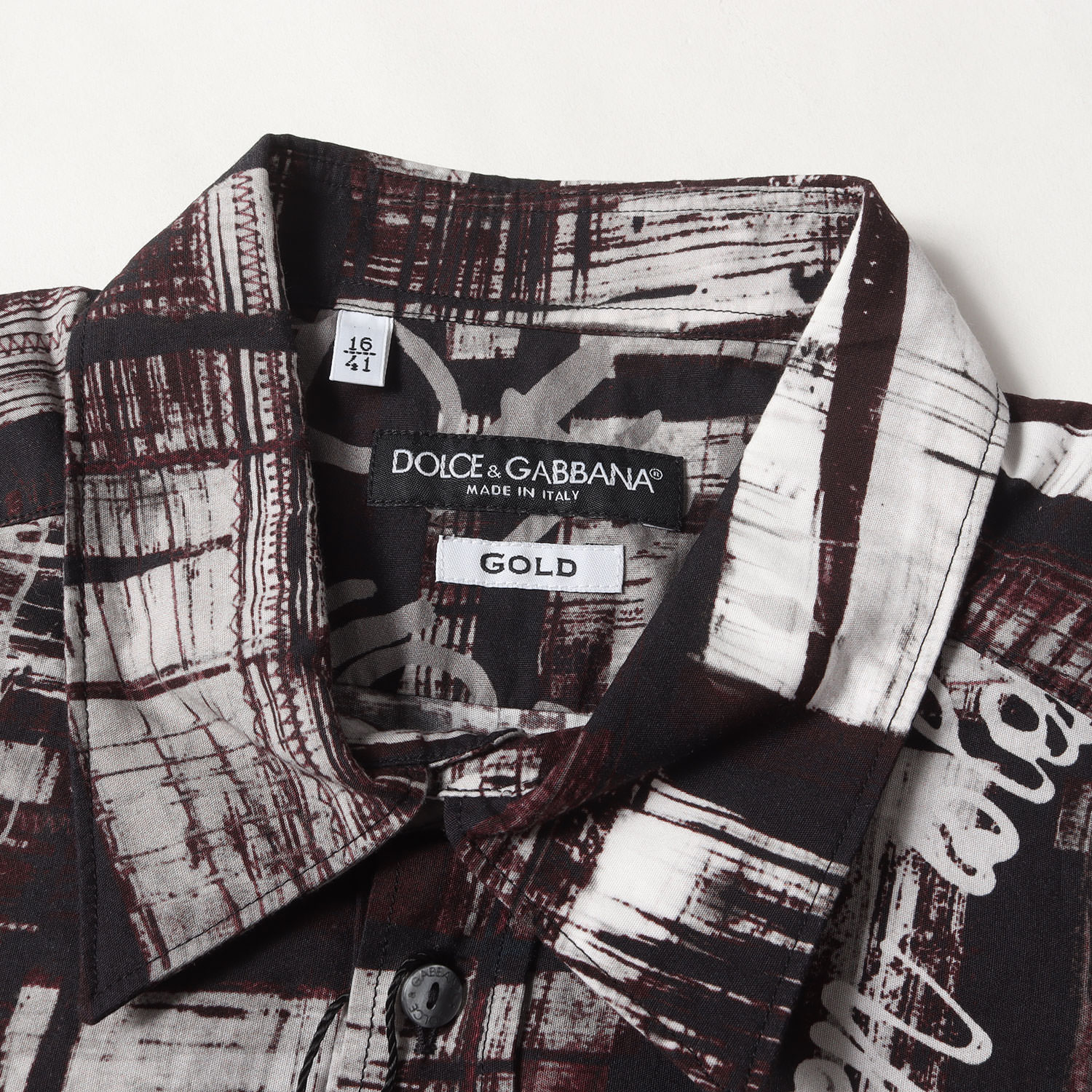 DOLCE & GABBANA Men's Long Sleeve Casual Shirt, Size 16/41, Black, Gold All-Over Graphic Cotton Broadcloth, Made in Italy