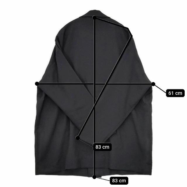 | 実寸サイズ | 着丈:約83cm 身幅:約61cm 裄丈:約83cm ※採寸画像がある商品はハンガーに吊るした状態での計測のため、平置きでの採寸とは差が生じる場合がございます。平置きでの実寸サイズをご希望の場合は、ご購入前に必ずご質問ください。 ※記載以外のサイズが合わないことを理由とした返品はできませんので、 記載部分以外で実寸サイズの気になる箇所があれば必ず購入前にご質問ください。 |