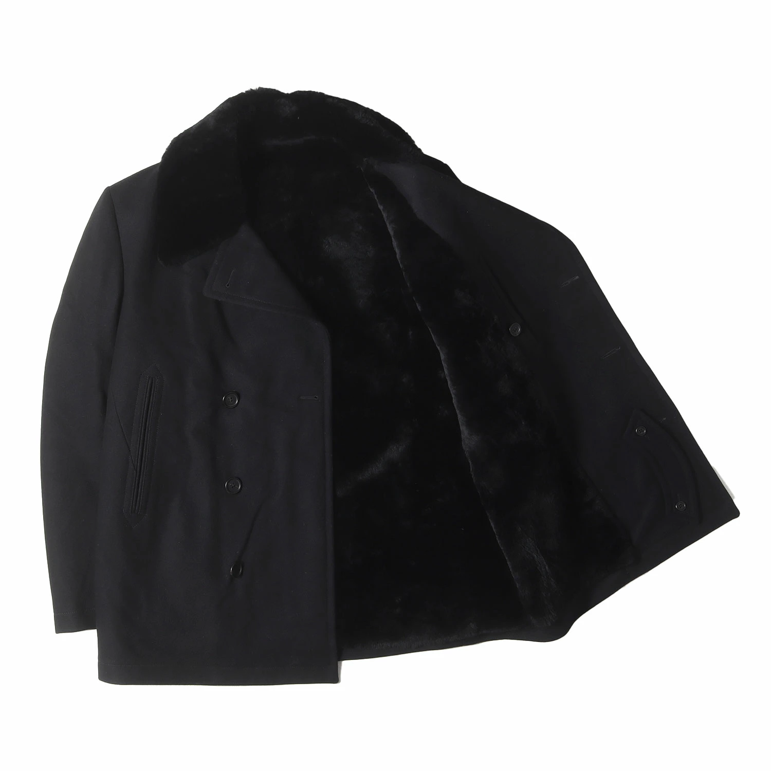 | 商品説明 | ・表地 しっかりとしたウール/カシミヤ混紡メルトン素材 ・裏地裏地、襟 シープムートンボア ・袖裏 レーヨンサテン生地 ・ダブルブレストボタン |