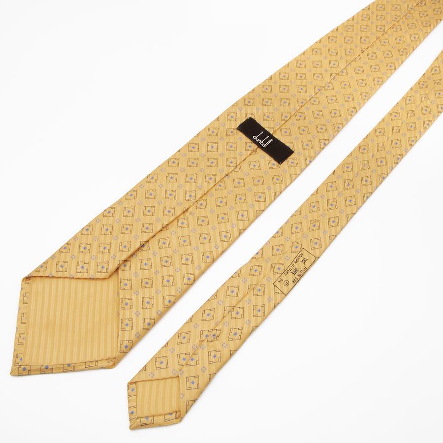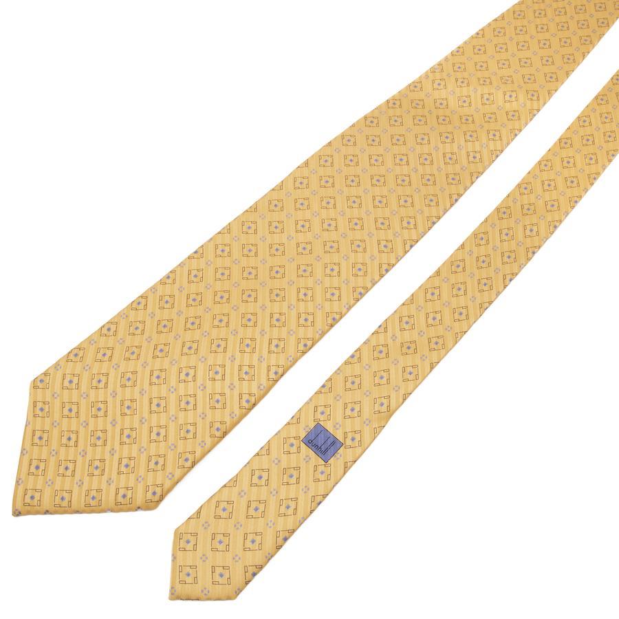 こちらは、鮮やかな黄色が胸元を照らす、ダンヒルのネクタイでございます。