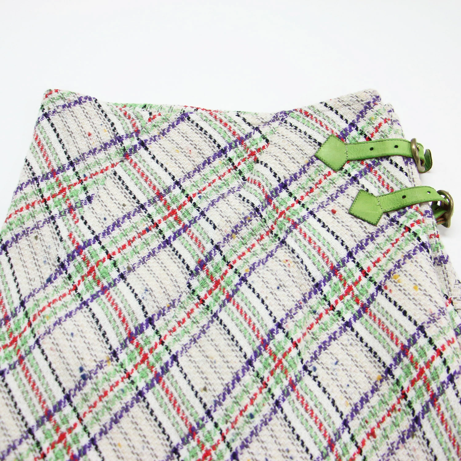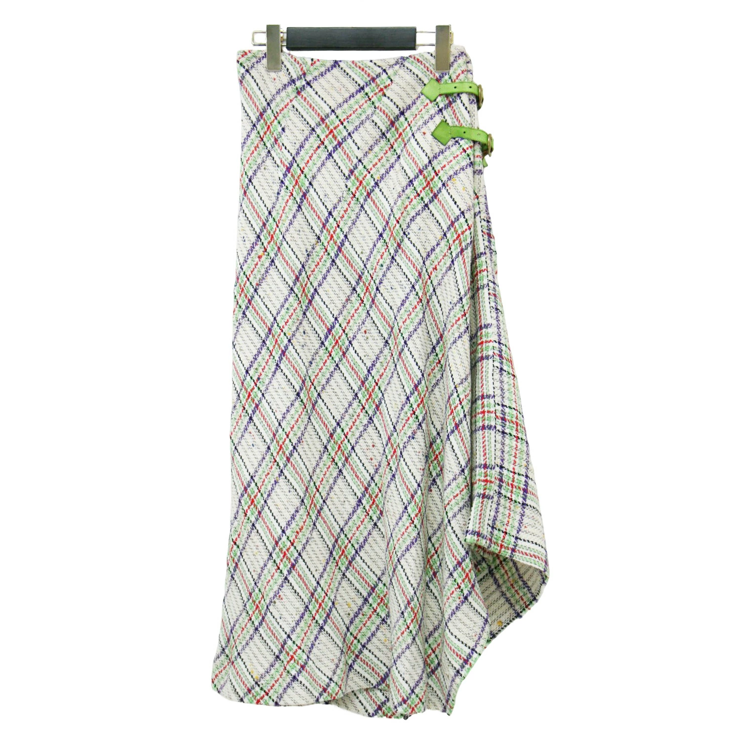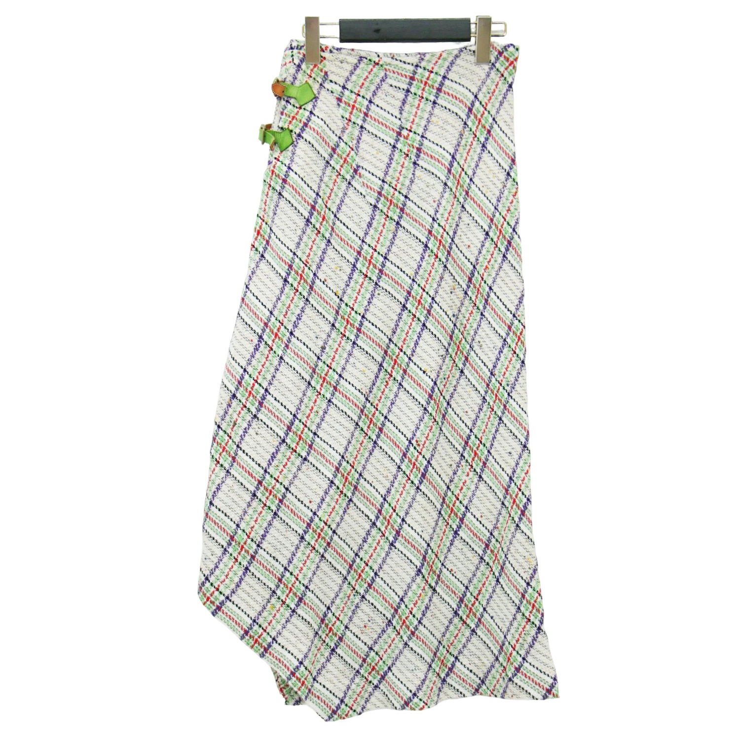 Eatable of Many Orders Skirt, White/Green, Size: Small | Checked Tweed Long Skirt | Raft Skirt, Maxi Length, Flared, Belted, Cotton, Wool, Silk | Bottoms | Made in Japan [Women's] [Pre-owned] [K4614]