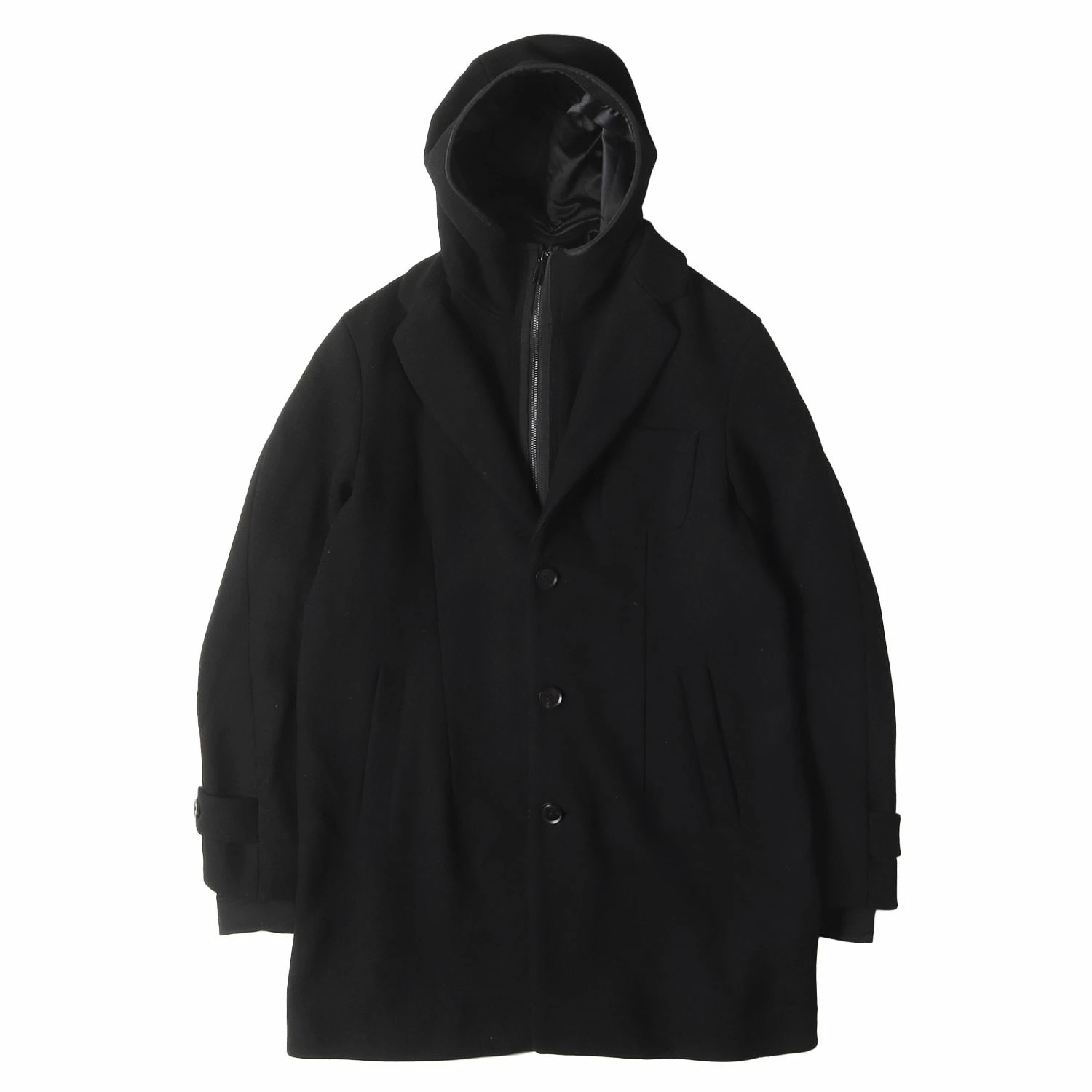 | 商品説明 | ・フードのレイヤードパーツが付属する2WAY仕様 ・メルトンウール素材 ・ノッチドラペル ・袖リブ内蔵 |