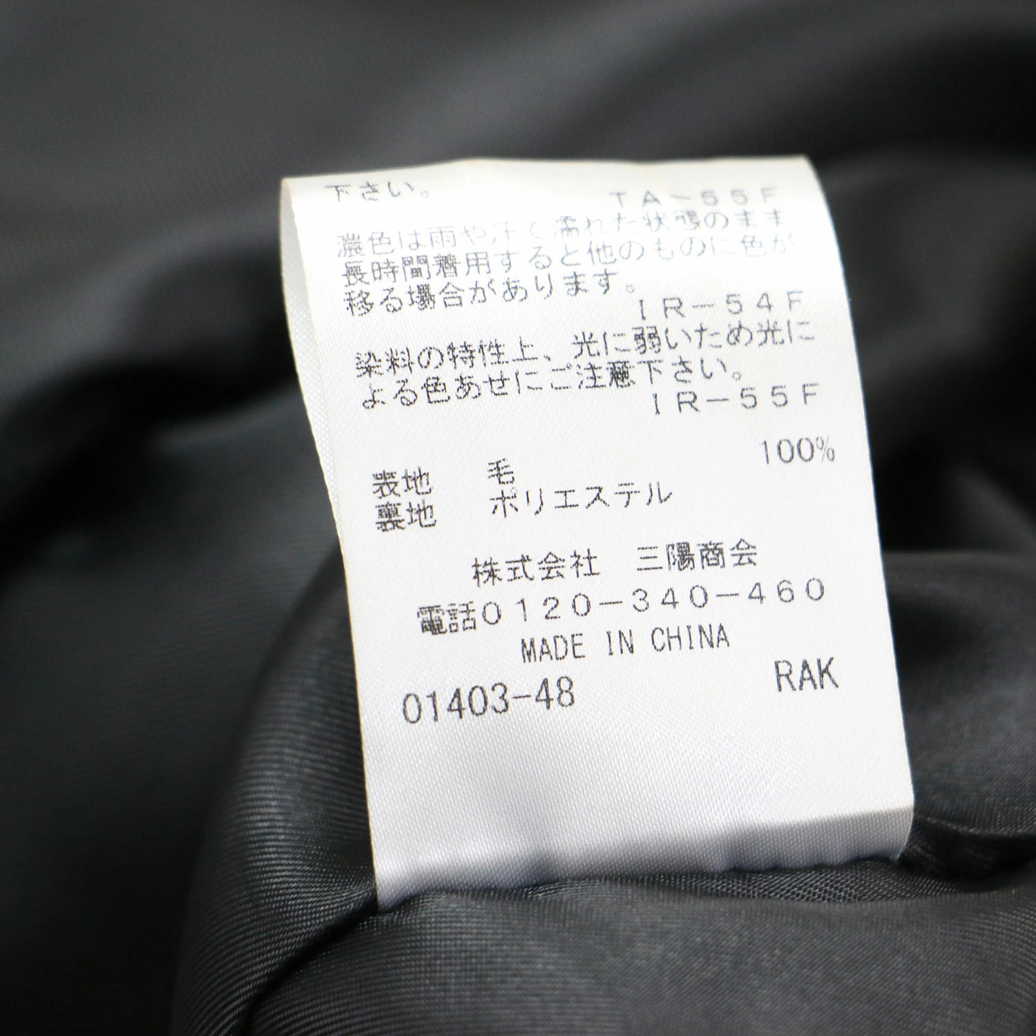 - 表地 ウール 100% 裏地 ポリエステル