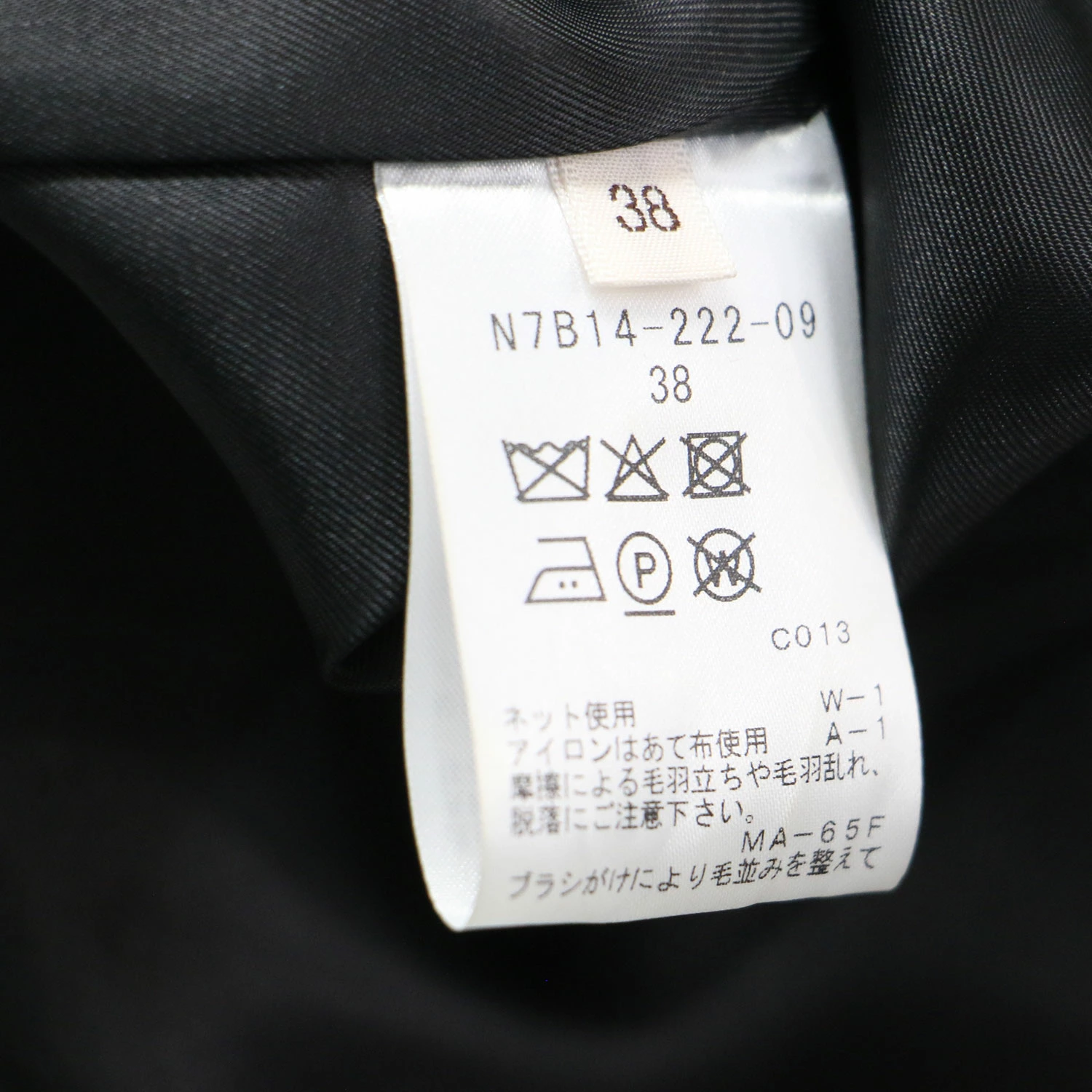 | サイズ | 38 着丈約66cm(背中襟下から)×身幅約51cm(脇下から)×肩幅約48cm×袖丈約55cm(肩上から) |