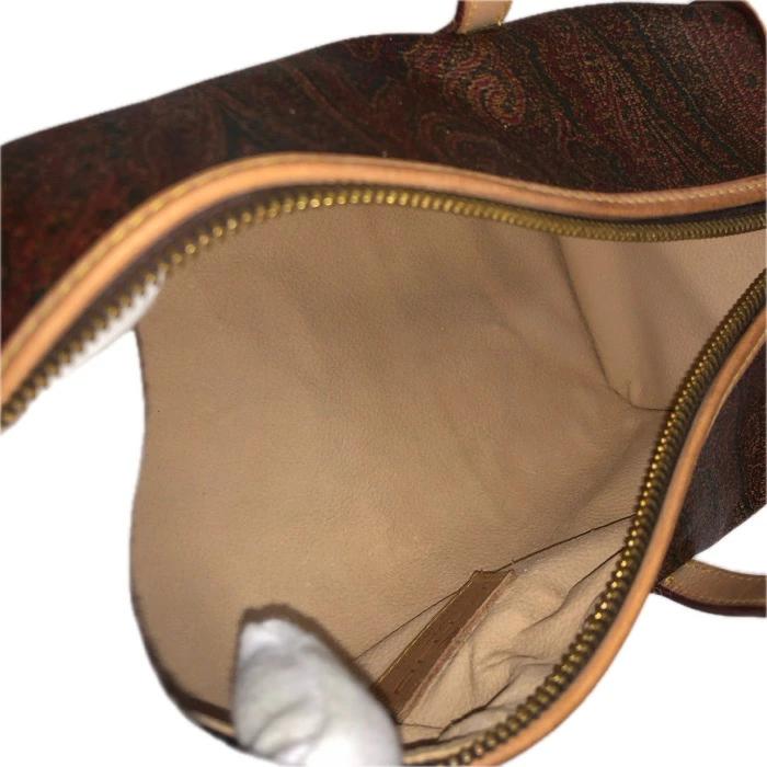 | 商品説明 | 【管理番号】 016146w 【ブランド名】エトロ 【アイテム】ハンドバッグ 【サイズ】 幅 約:28.5cm 高さ 約:11.5cm マチ 約:12cm 持ち手 約:36cm 【色・柄】ブラウン系 ペイズリー柄 【素材】 レザー・PVC 【外観ランク】 SAランク 【内観ランク】 SAランク 【商品補足説明】開閉:ファスナー 美品ですがレザーに小傷・シミ有。ハンドルに癖あり。内側の素材が劣化しています。内側に臭いあり。 |