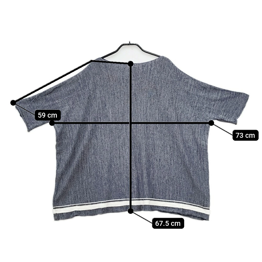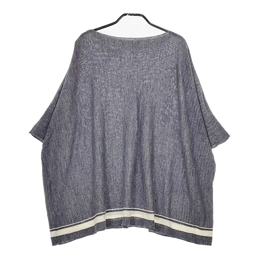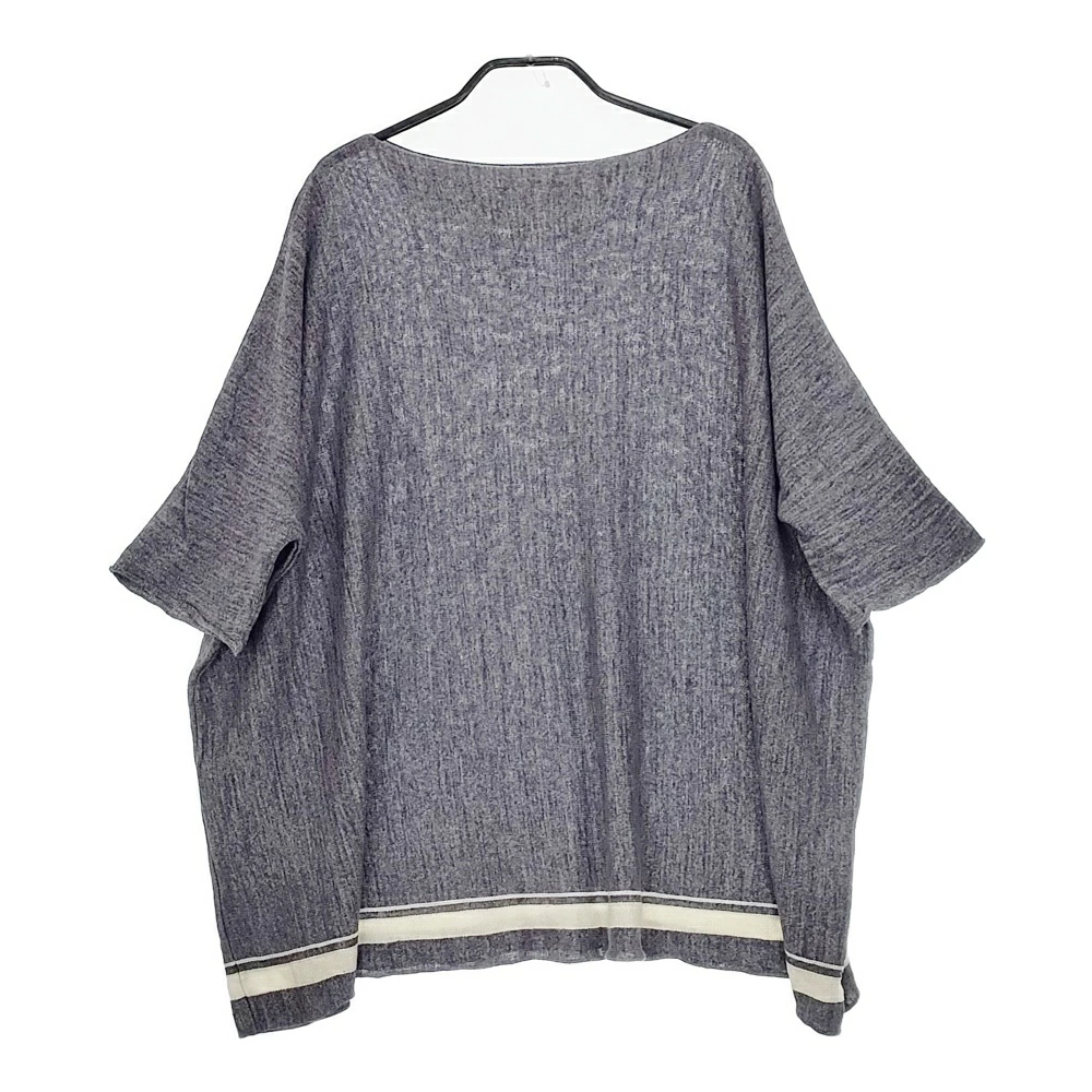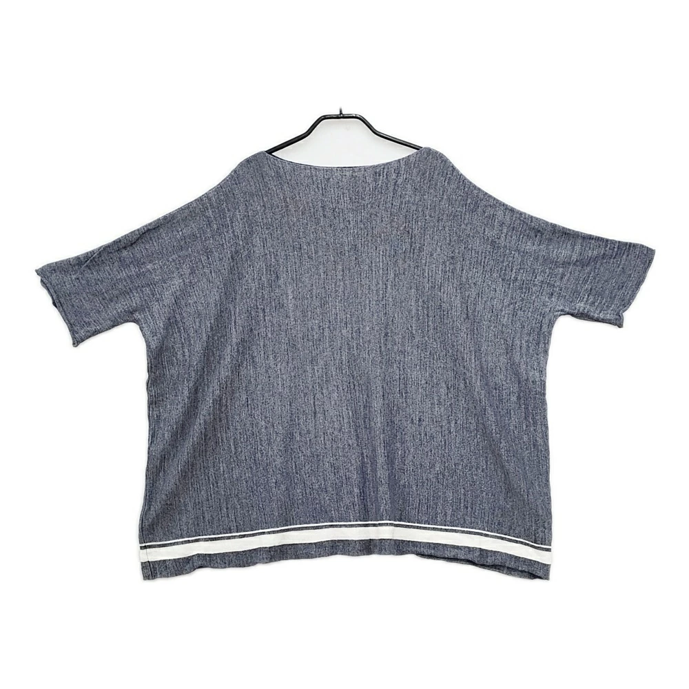 Pre-owned evam eva E111K028 linen-cotton wide-leg short-sleeved knit sweater in navy, women's, 5-0312M