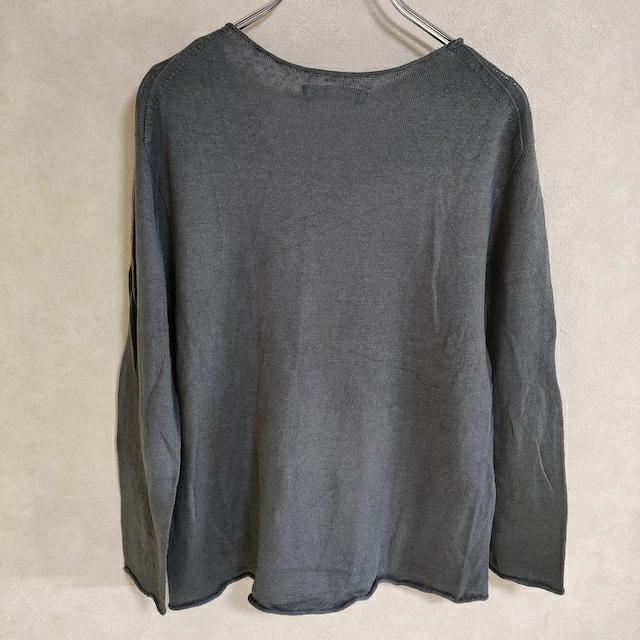 Pre-owned evam eva V-neck pullover, E191K073, size 1, linen knit, charcoal gray, women's, 4-0208M