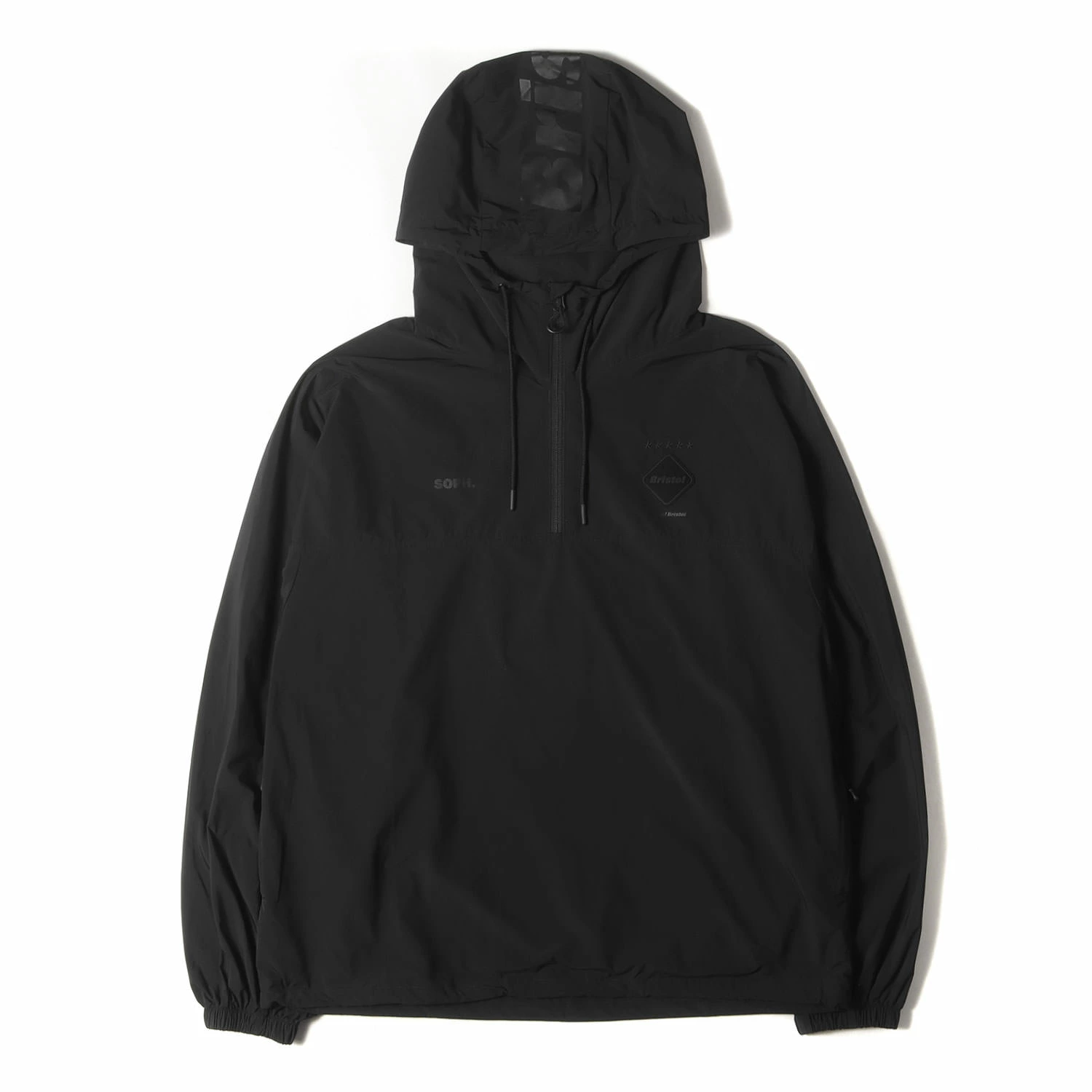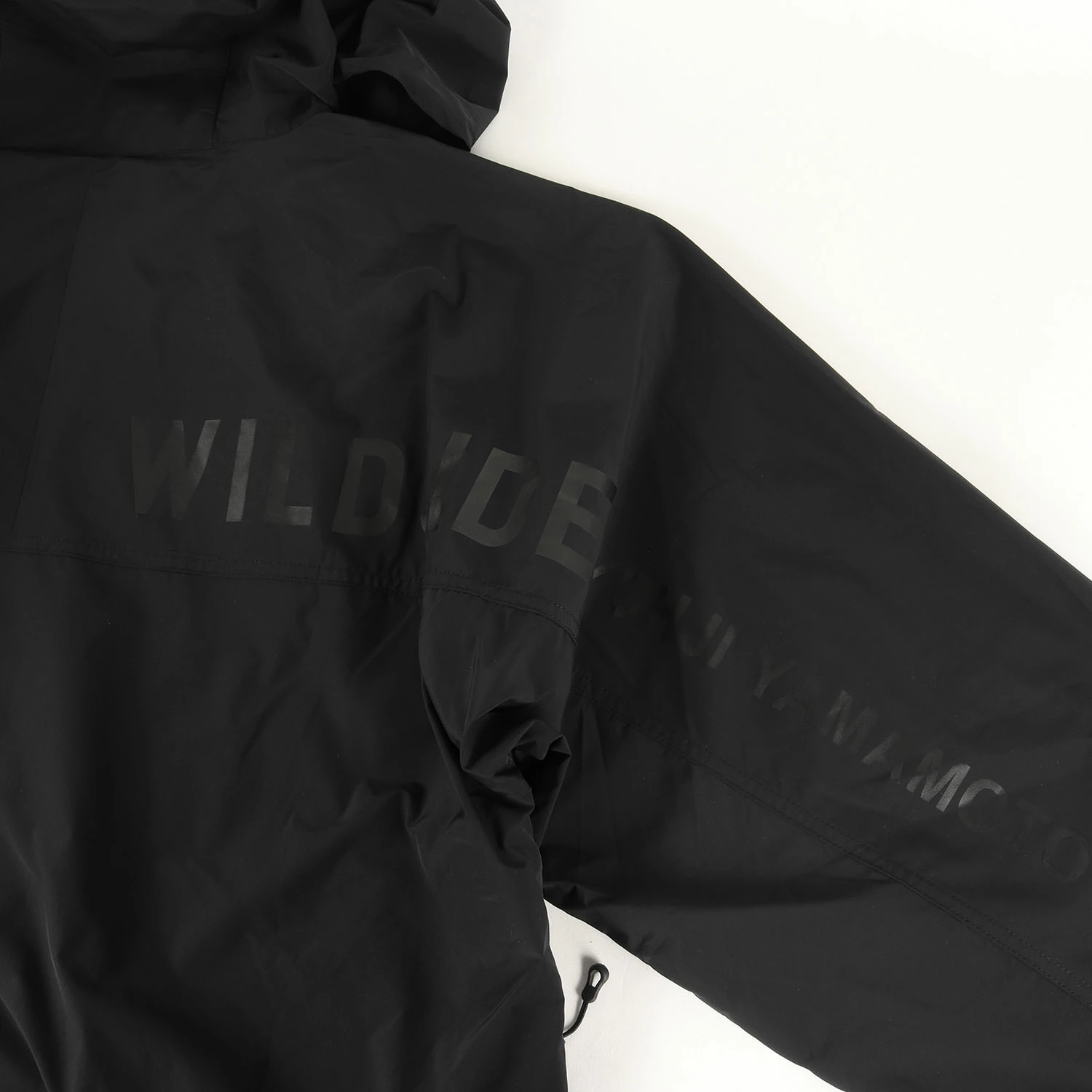 - WILDSIDE YOHJI YAMAMOTOとのコラボレーションアイテムです。ポリエステル生地を使用し、ハーフジップで仕上げたアノラックパーカーです。ブランドロゴなど全てオールブラックのプリントにてデザインしています。