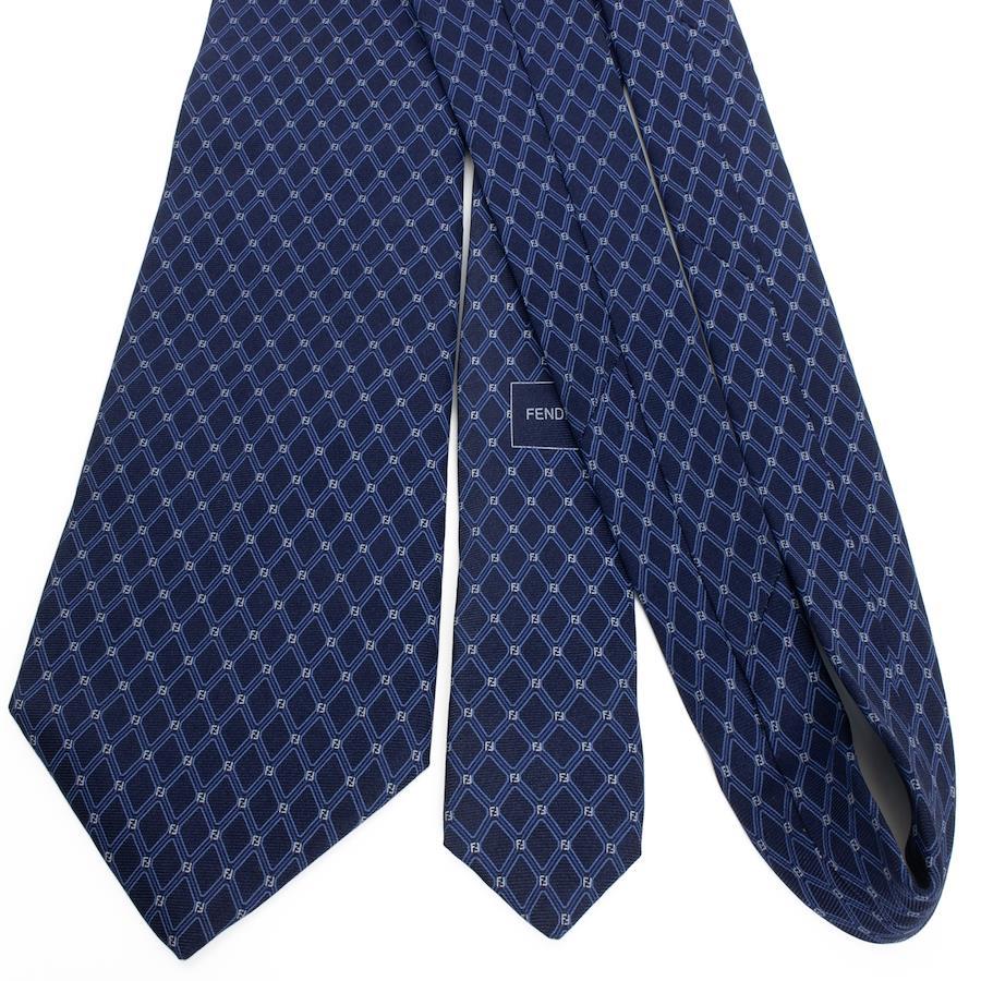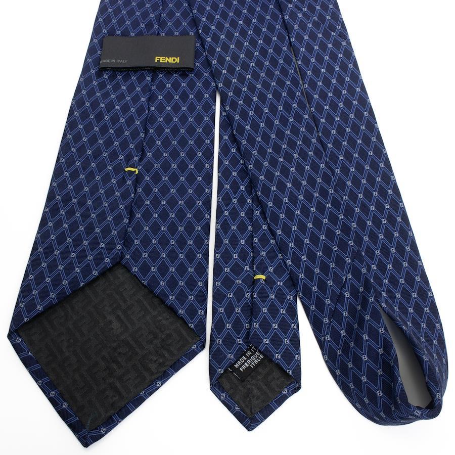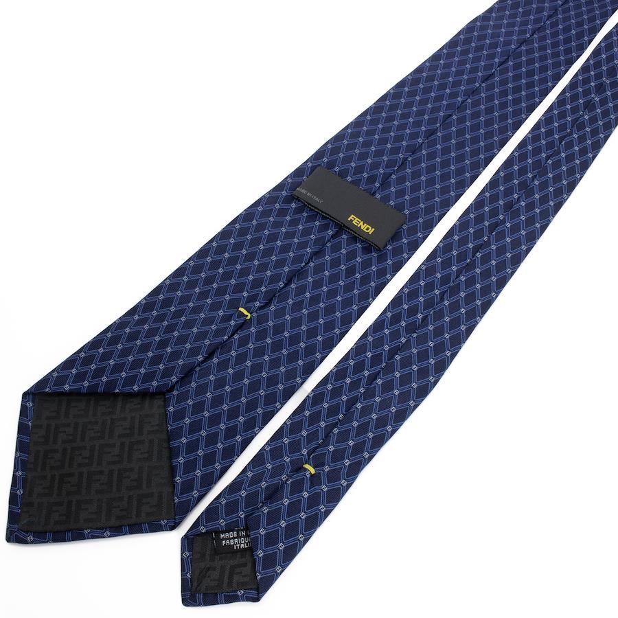 こちらは知的な幾何学にロゴが潜む、デザインが魅力的に映る、フェンディのネクタイでございます。