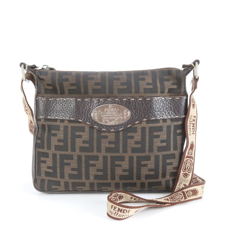 FENDI Selleria Shoulder Bag in Leather and Canvas, Black, 8BT092
