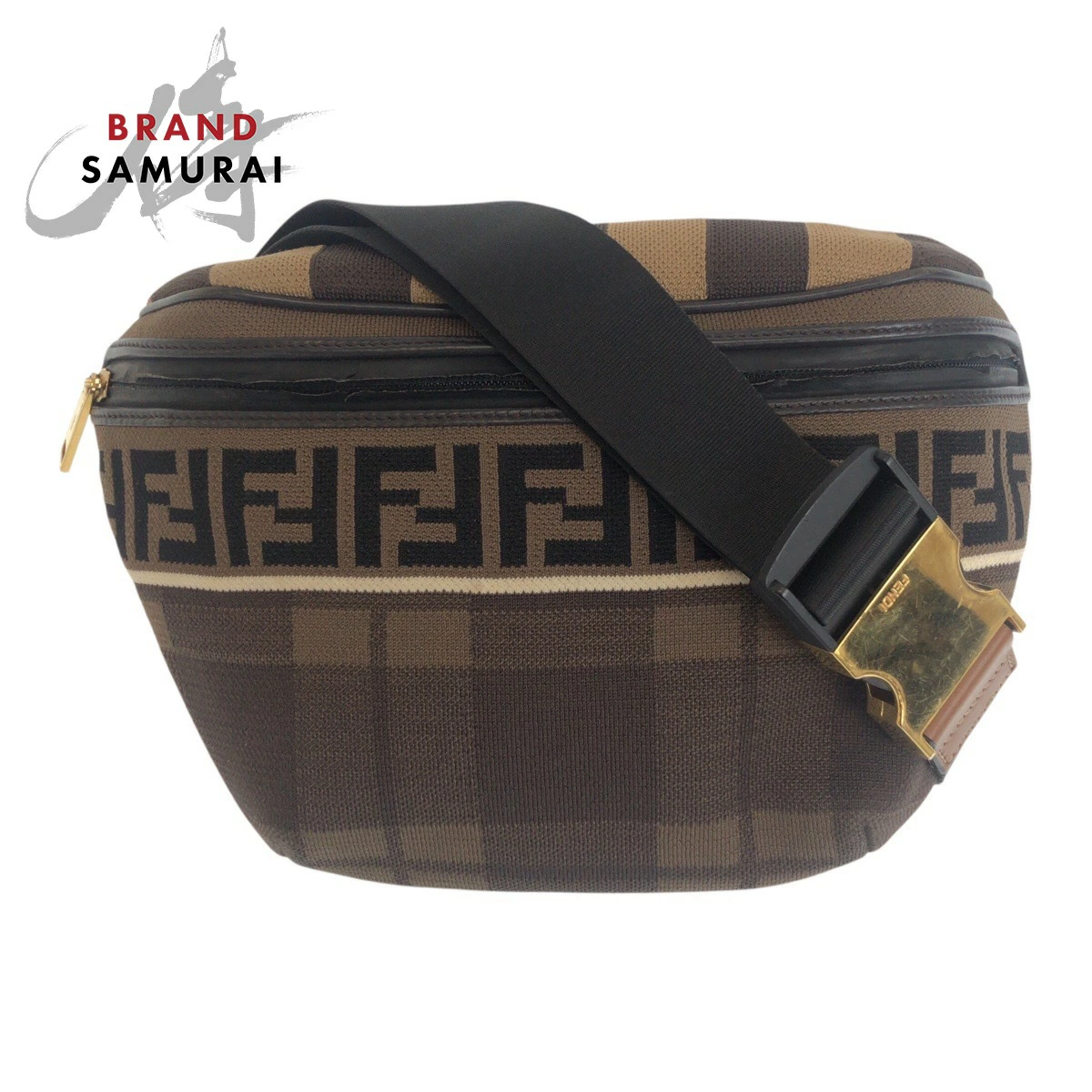Pre-owned FENDI Zucca pattern brown canvas with gold hardware, size 7VA434 A4BI 189 8465, men's body bag/bum bag, item number 505468.