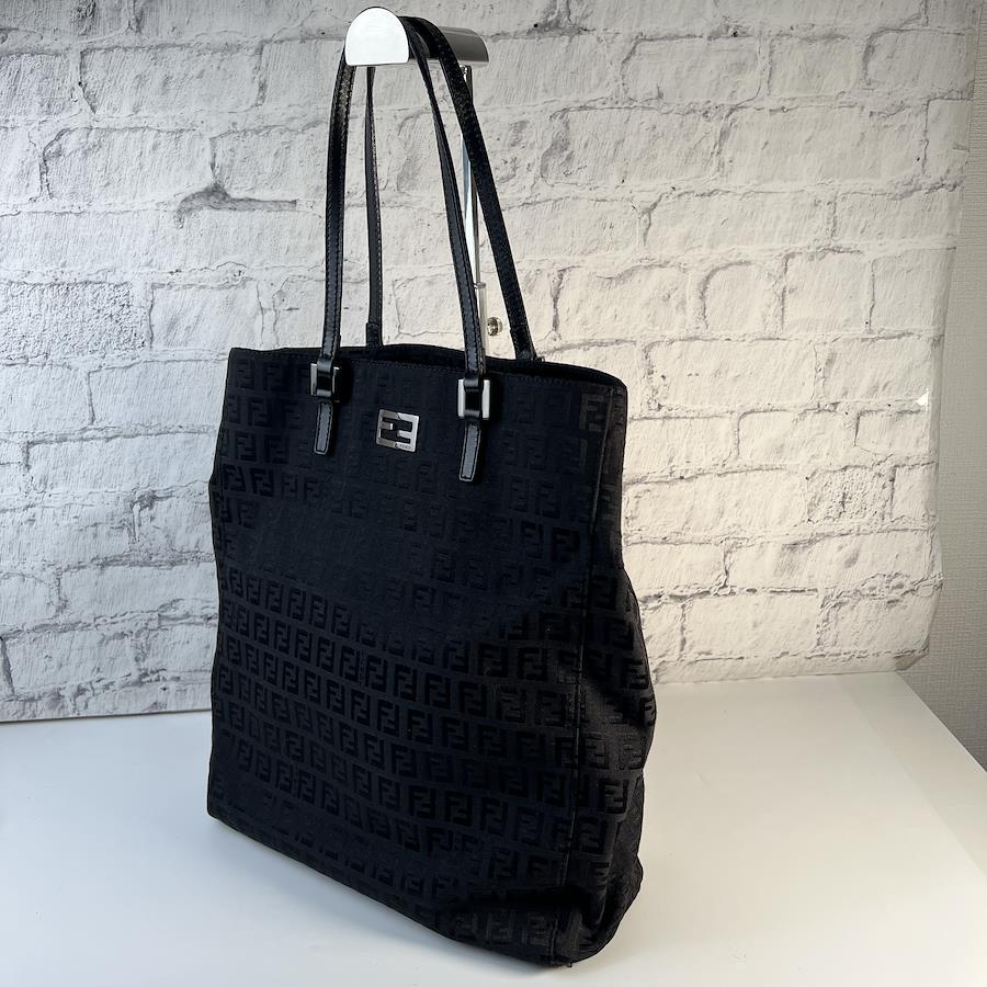 美品 FENDI フェンディ ズッカ キャンバス トートバッグ ブラック A-8534