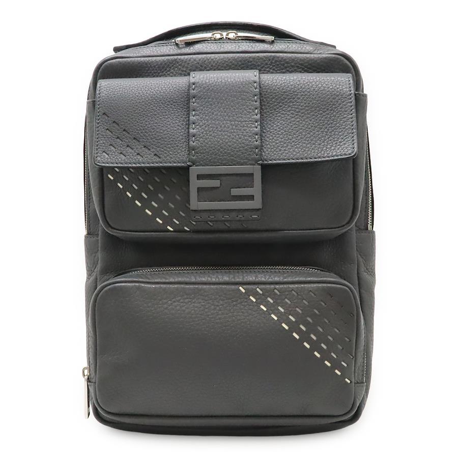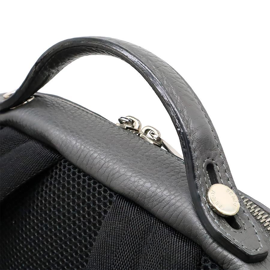 FENDI Selleria FF logo backpack in grey and black leather with silver hardware, 7VZ047