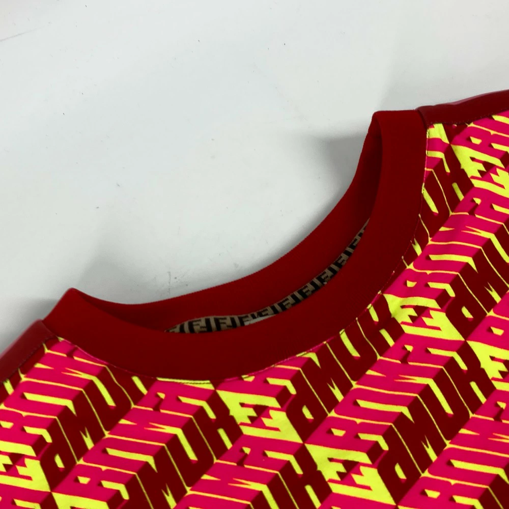 Pre-owned FENDI FS7137 logo crew neck short-sleeved T-shirt in red, cotton and polyurethane.