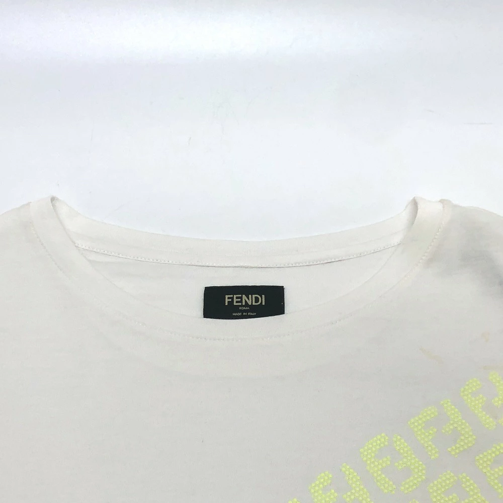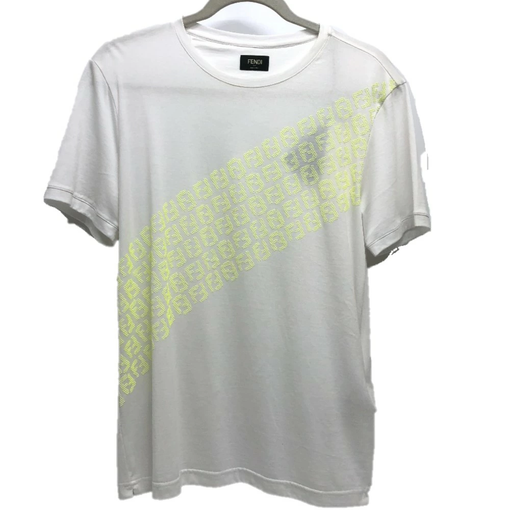 Pre-owned FENDI FY0894 FF logo short-sleeved cotton T-shirt in white and yellow for men.