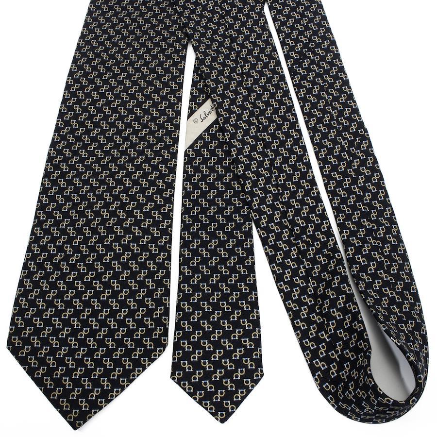 こちらは小さなガンチーニが律儀に並ぶ、フェラガモのネクタイでございます。