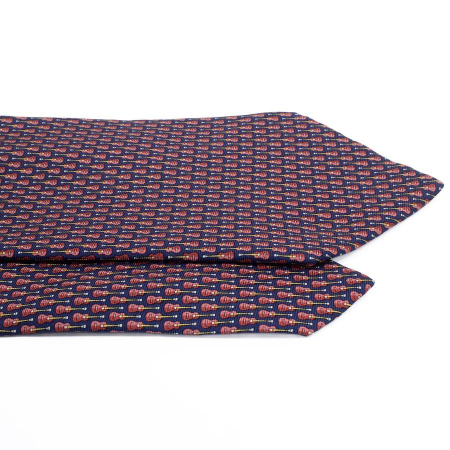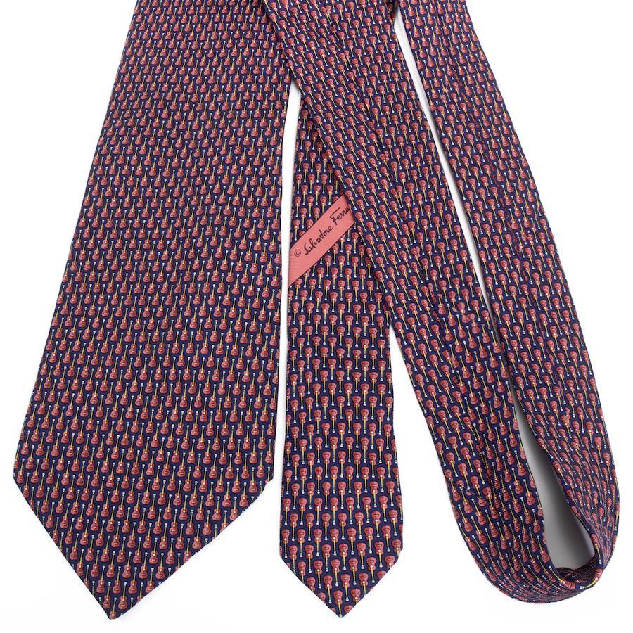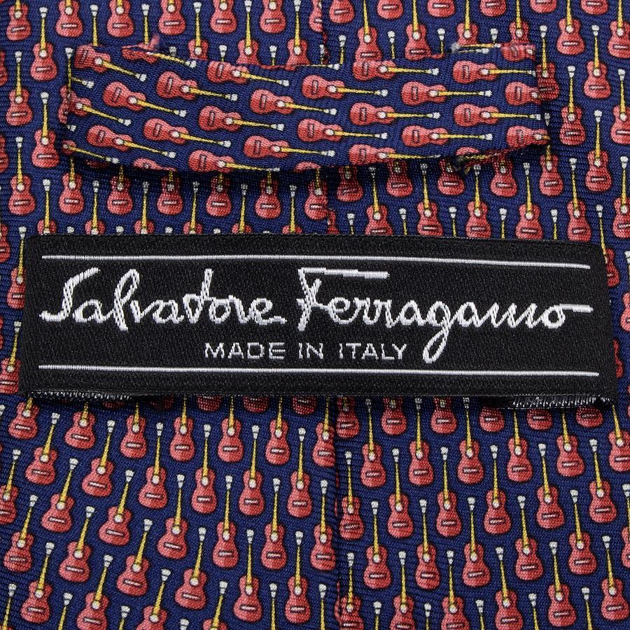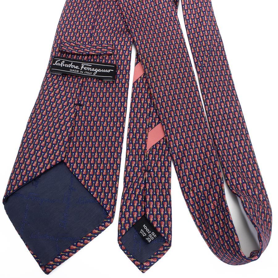 菲拉格慕男女通用寬版印花領帶,真絲材質,藏青色、紅色、酒紅色和黃色,商務休閒皆宜,通體印花,吉他圖案,獨特時尚,意大利製造,精美絕倫,S540