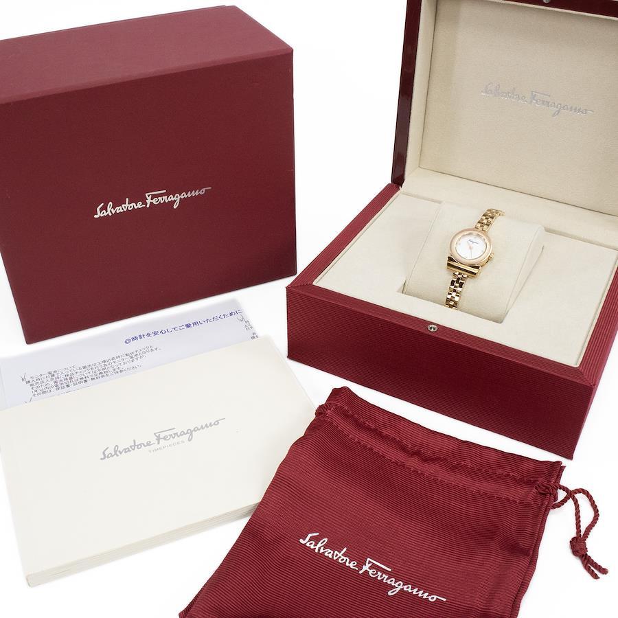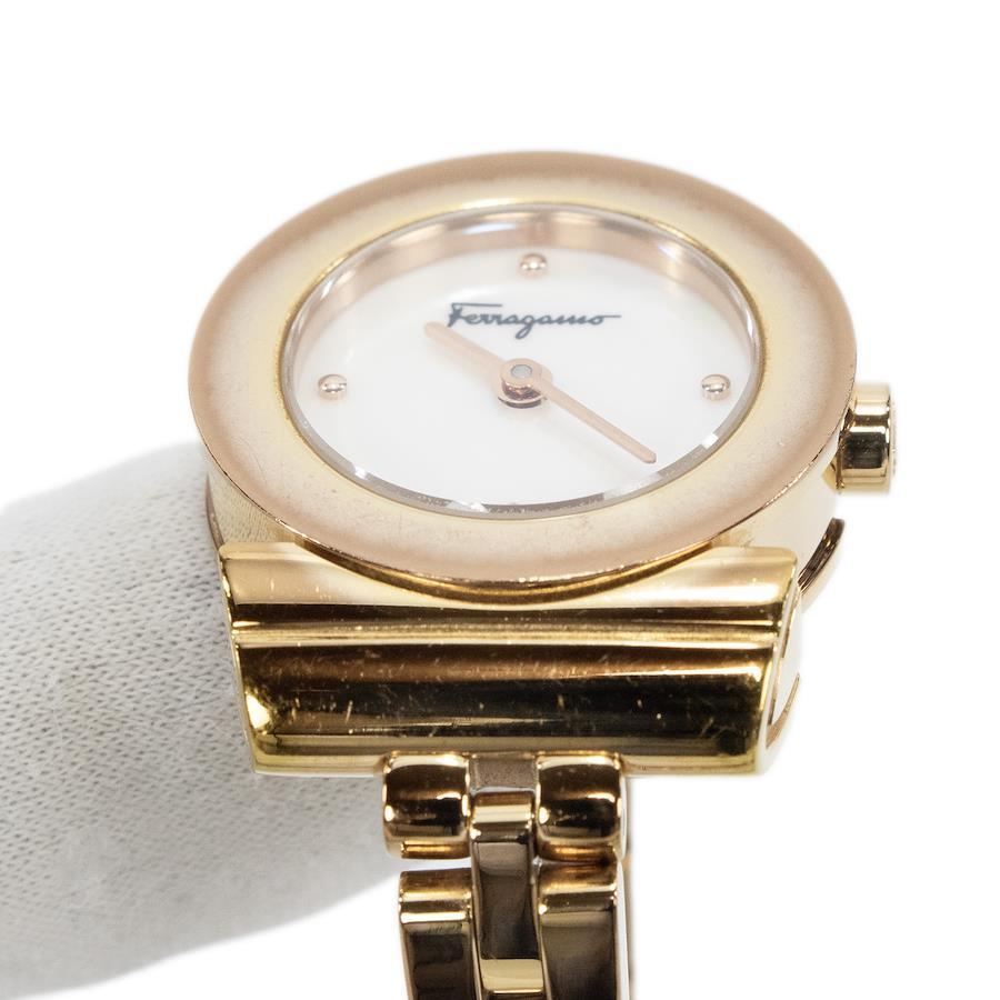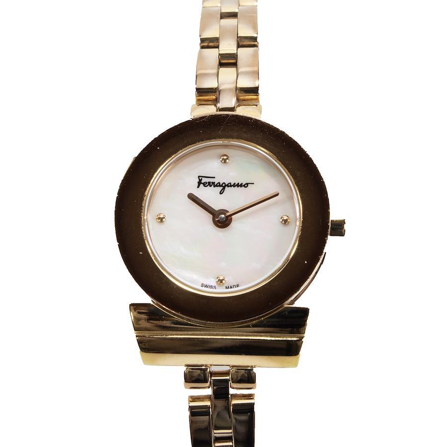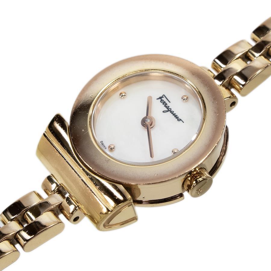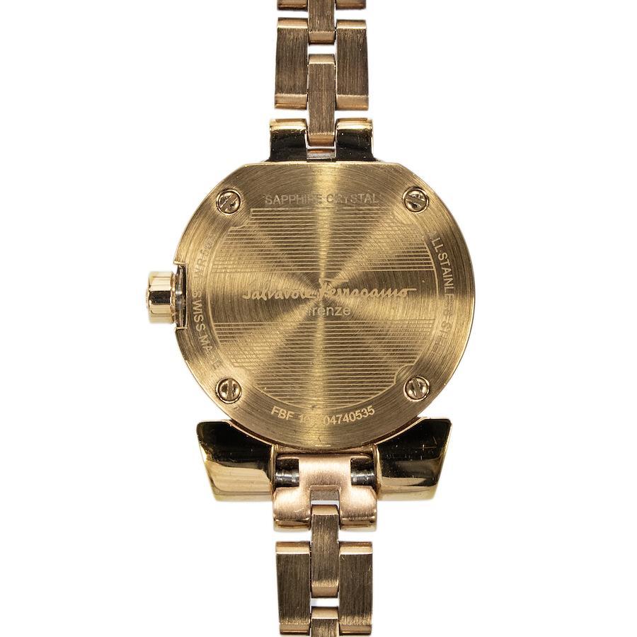 こちらはピンクゴールドの輝きが手元を彩る、フェラガモのガンチーニ・腕時計でございます。