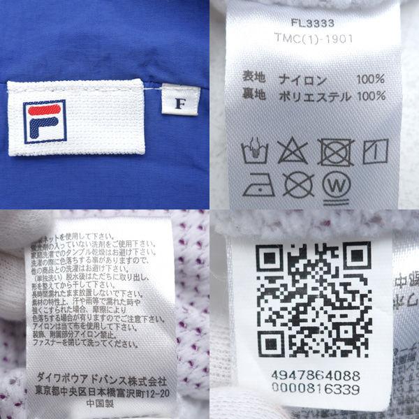 ・メーカー :FILA / フィラ・製品型番 :FL3333・サイズ :表記サイズ:F,身幅 (約cm):59,着丈 (約cm):63,裄丈 (約cm):80,・色(柄)の系統:ブルー ホワイト パープル・デザイン :(メンズ)アウター/ジャケット・素材 :表地:ナイロン100% 裏地:ポリエステル100%