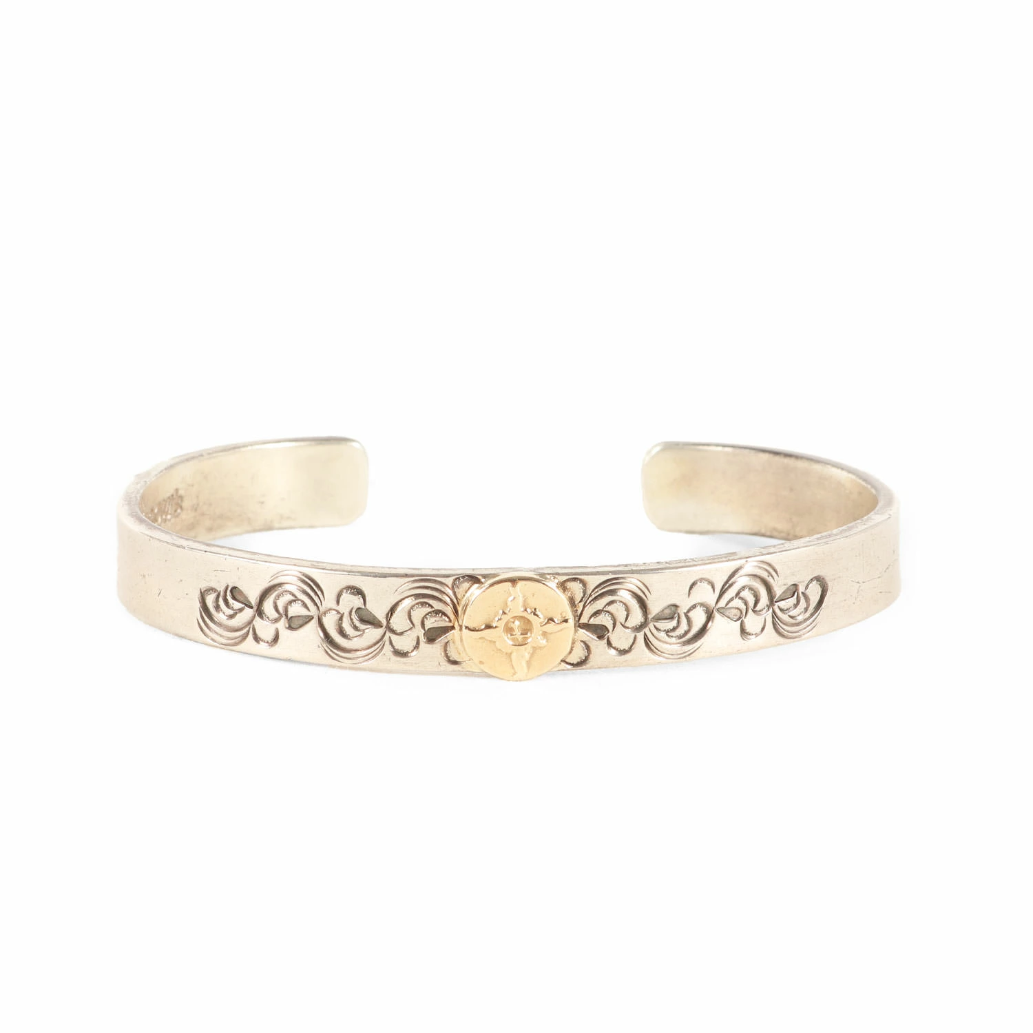 - カラ草彫りをデザインした、ややスリムな8mm幅で仕上げたバングルになります。