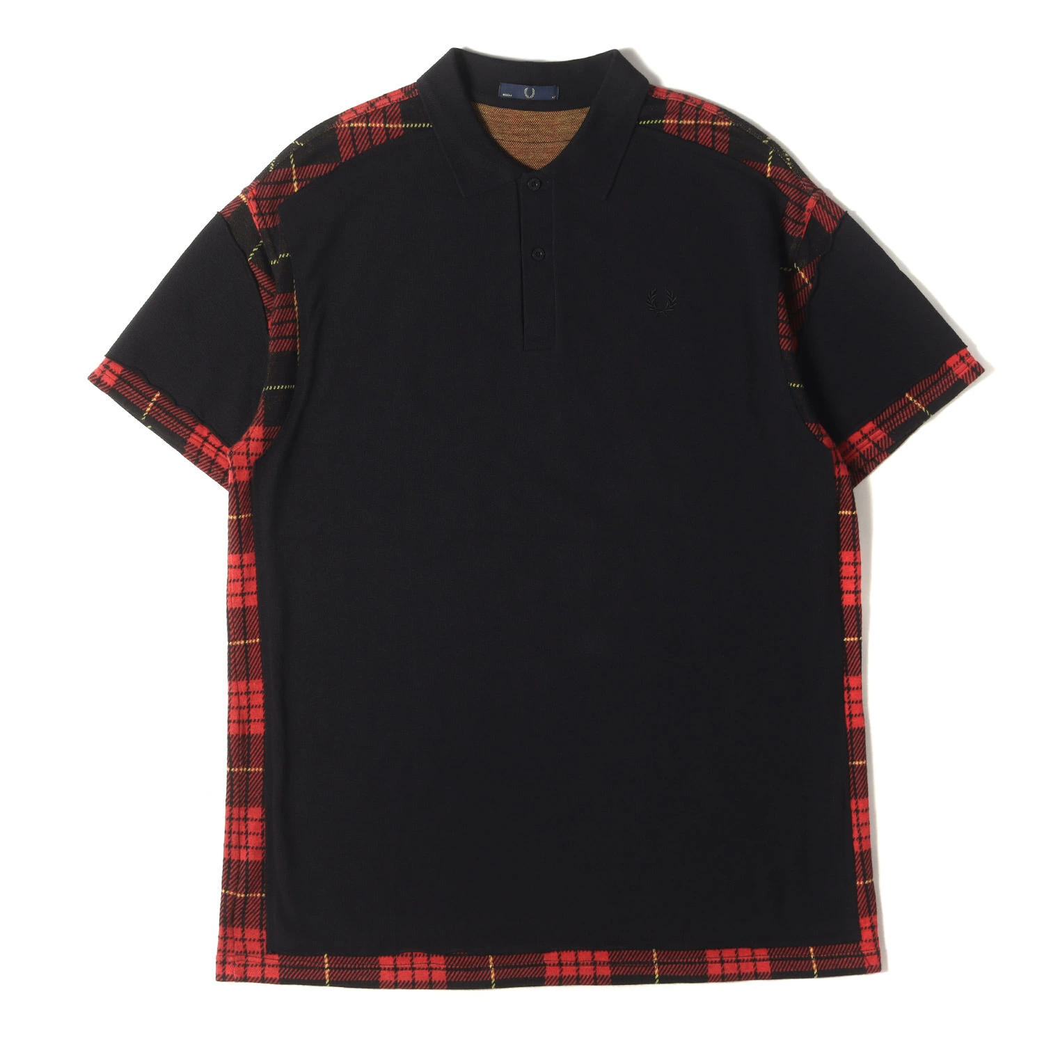 FRED PERRY Men's Tartan Check Stretch Knit Polo Shirt, Size 42 (M5800), Laurel Wreath, Black and Red, Short Sleeve Top, Pre-owned, K4619