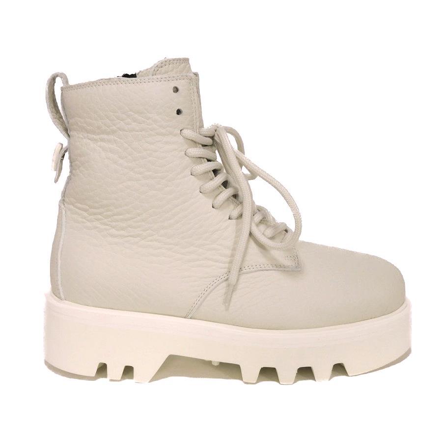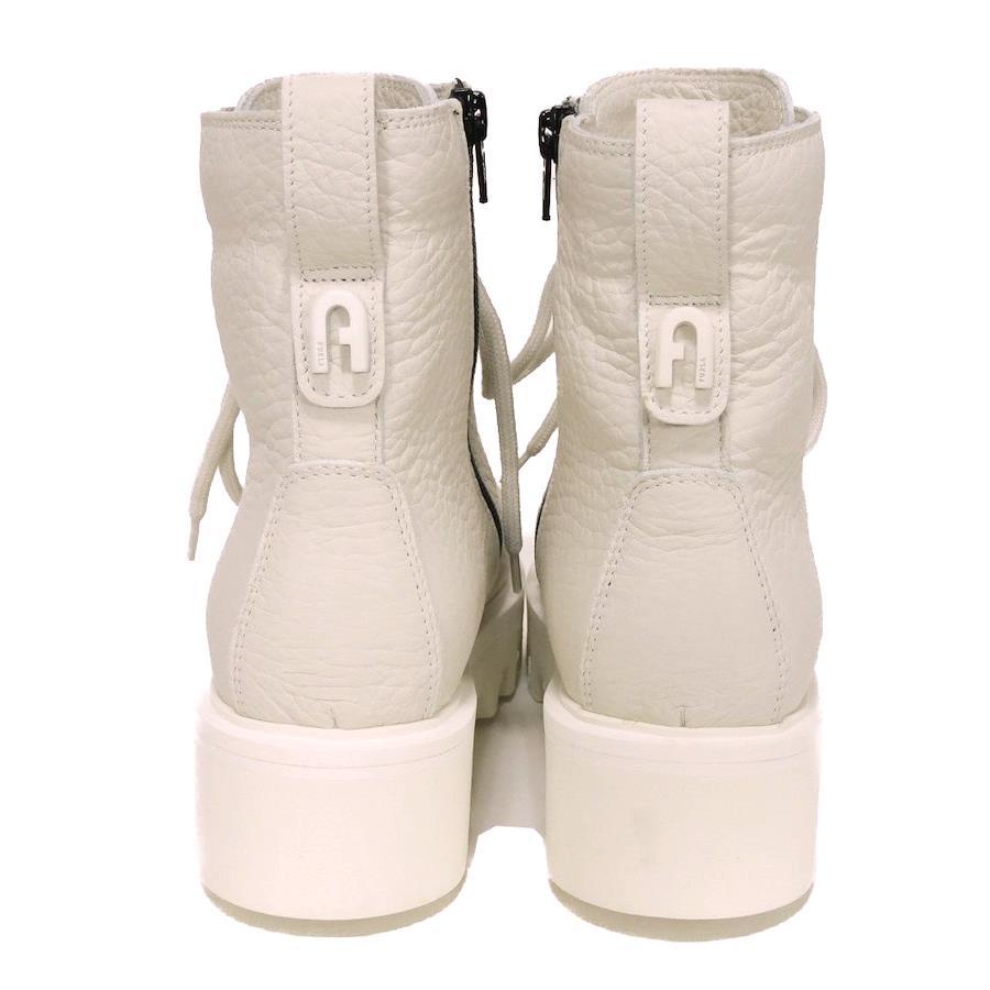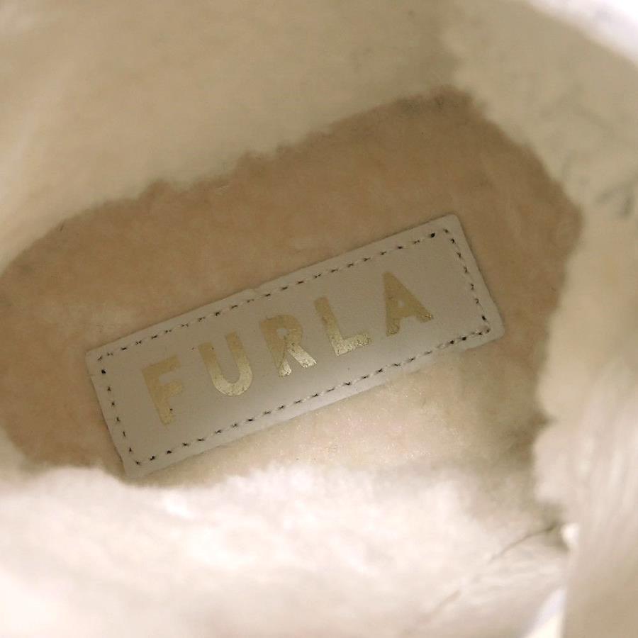 フルラのアーチロゴがあしらわれた、型押しカーフレザーにライニングにはファーをあしらった「リタ アーミー」ミドルサイズのサイドジップブーツです。