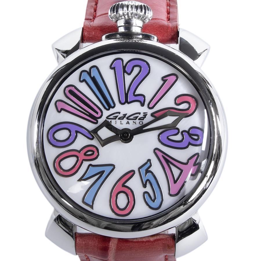 こちらはパステルカラーがシェル盤で踊る、ガガミラノのマヌアーレ40mm・腕時計でございます。