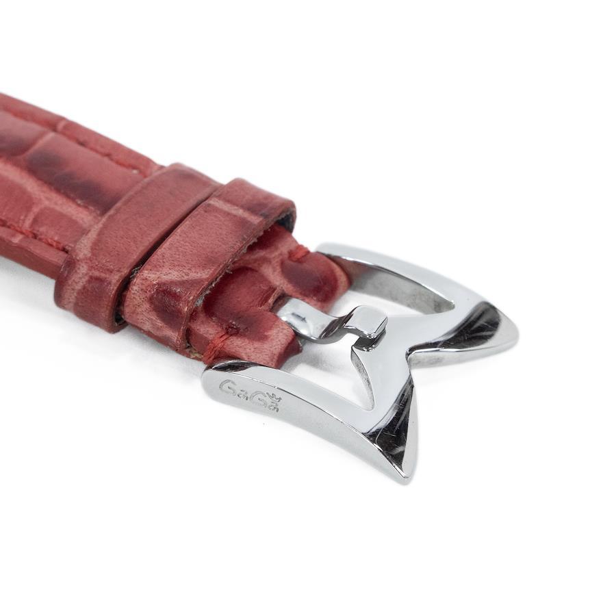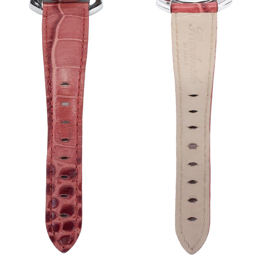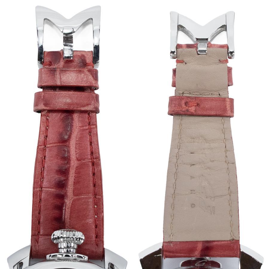 鮮やかなレッドの純正レザーベルトが、その華やかな世界観を腕元で完成させます。
