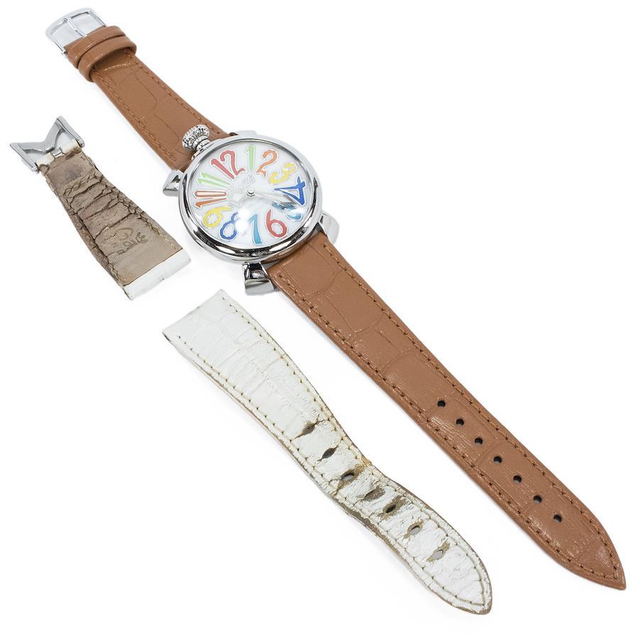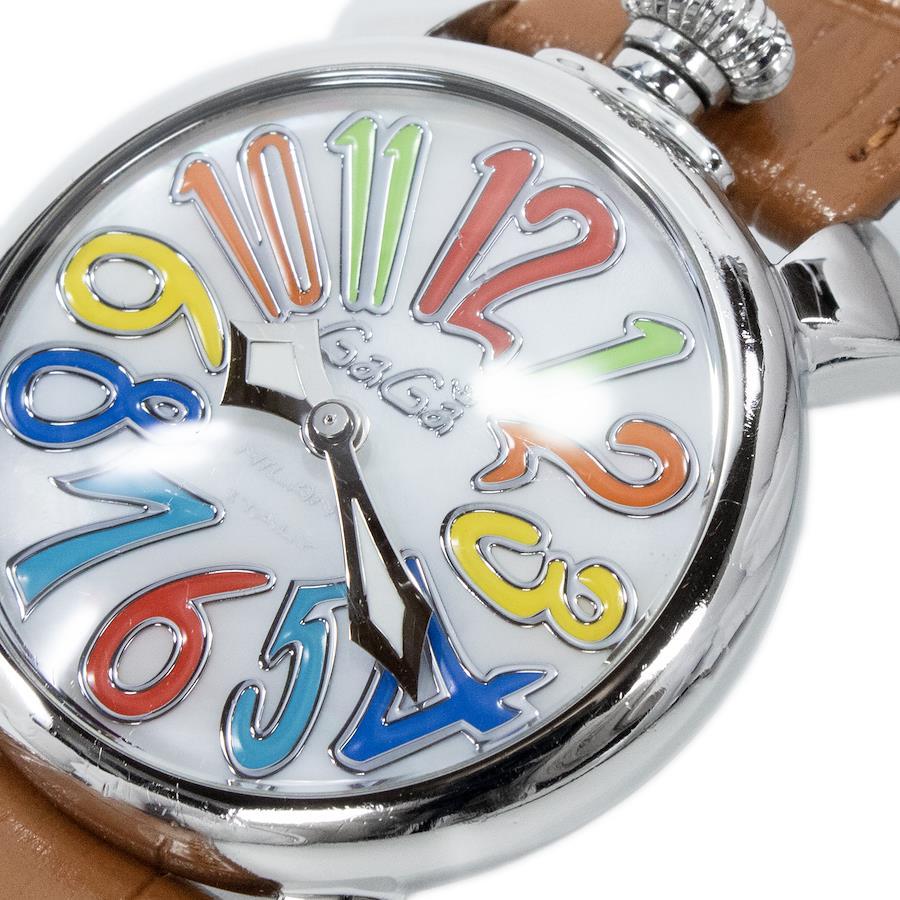 こちらはシェルの輝きにカラフルな数字が踊る、ガガミラノのマヌアーレ40mm・腕時計でございます。