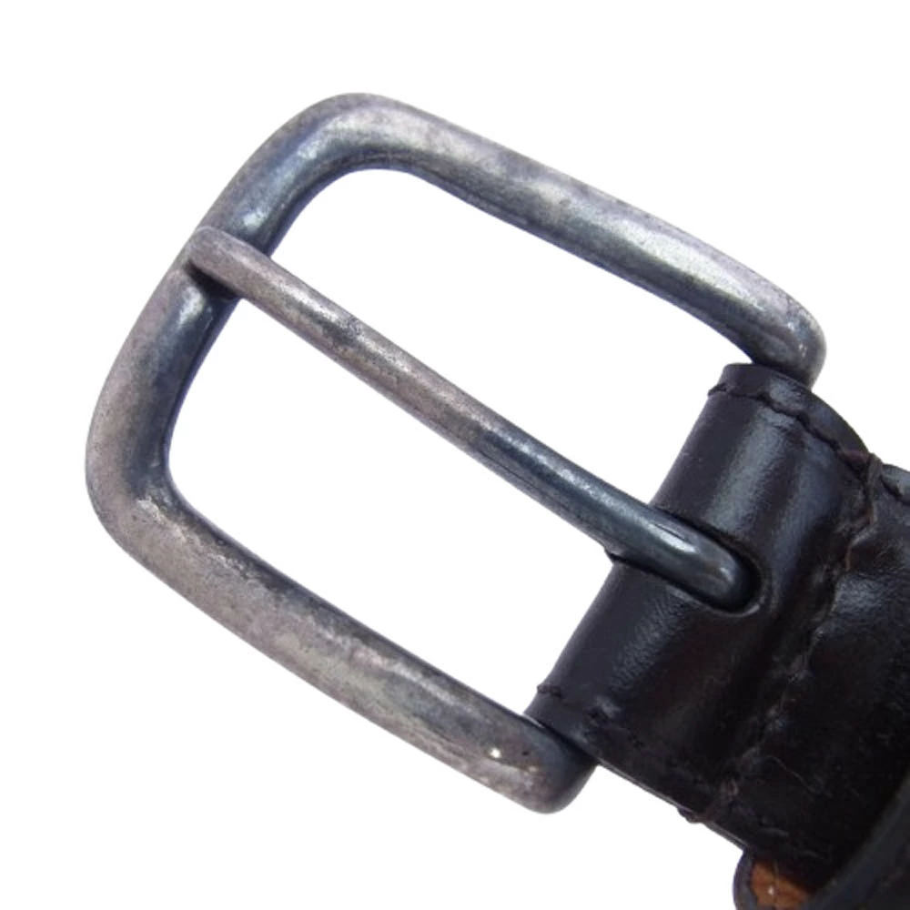 Pre-owned GANZO Men's Dark Brown Leather Belt with Square Silver Buckle