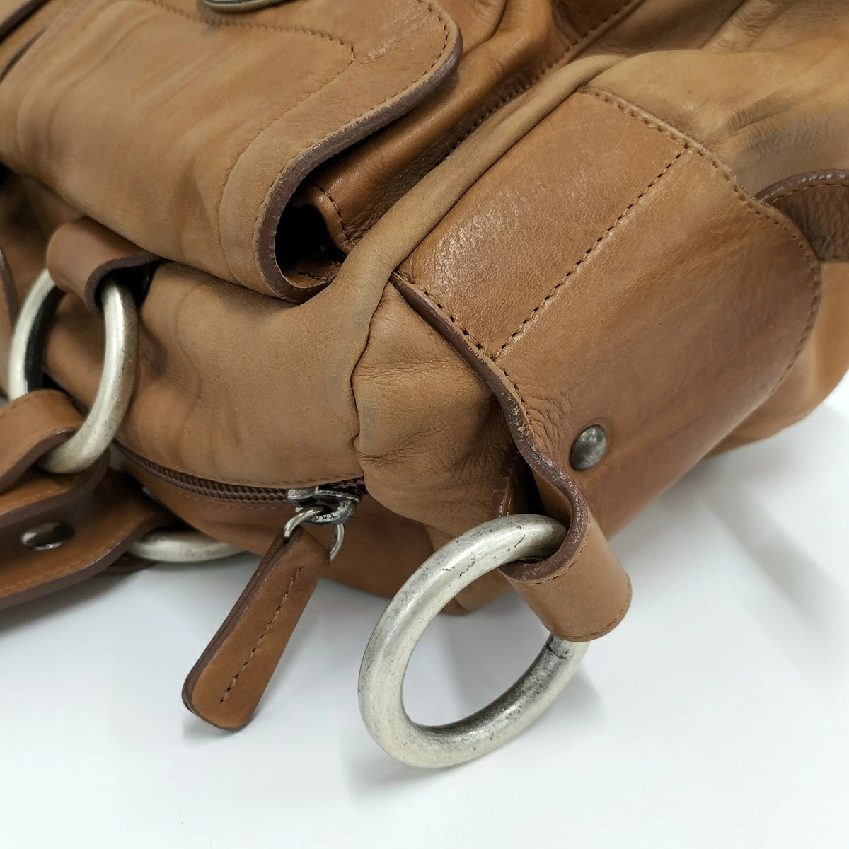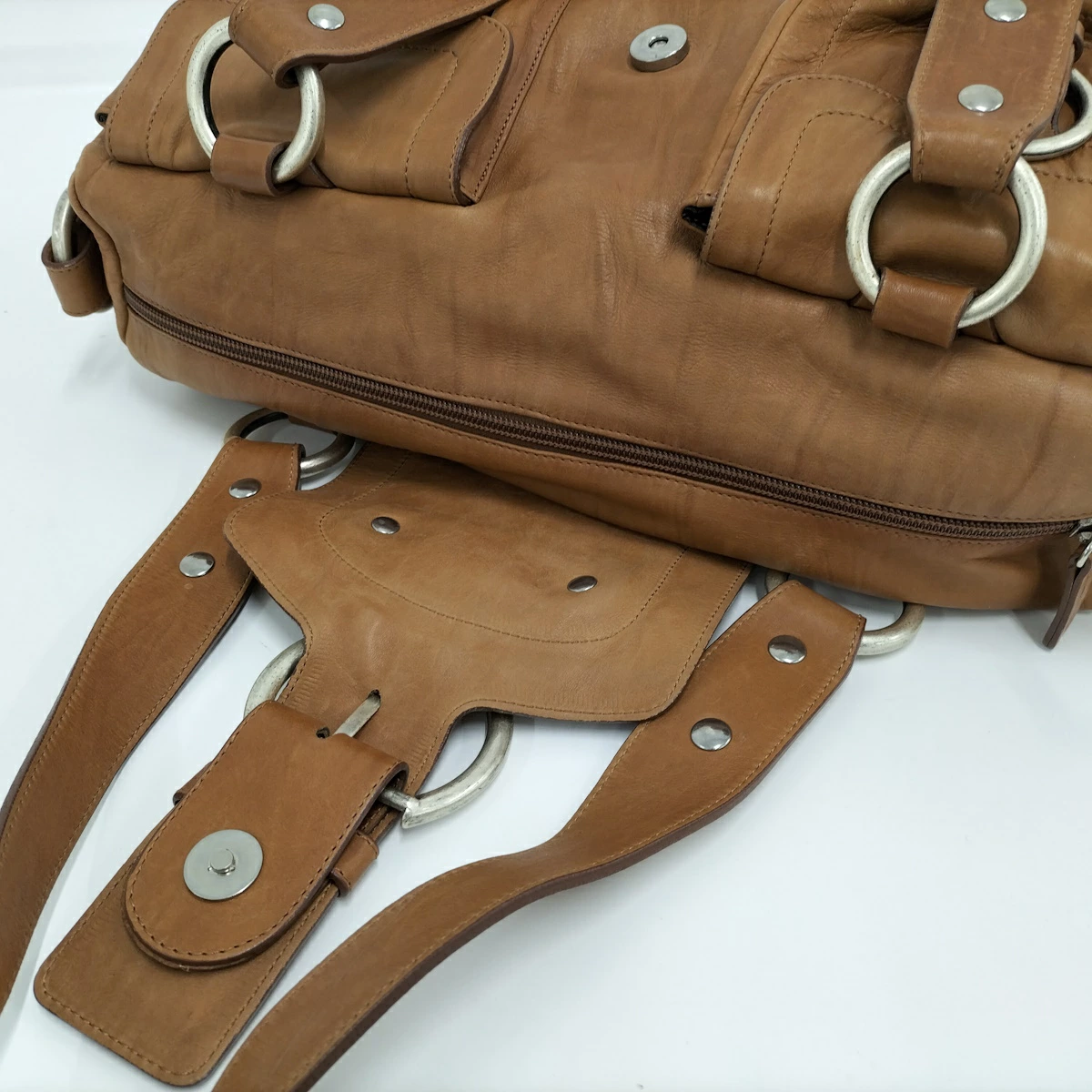 [商品情報]・カラー:キャメル・素材/ライン:レザー・サイズ:最大約 W40×H18×D14(cm)・ショルダーの長さ:最大約63(cm)※多少の誤差はご了承下さい。
