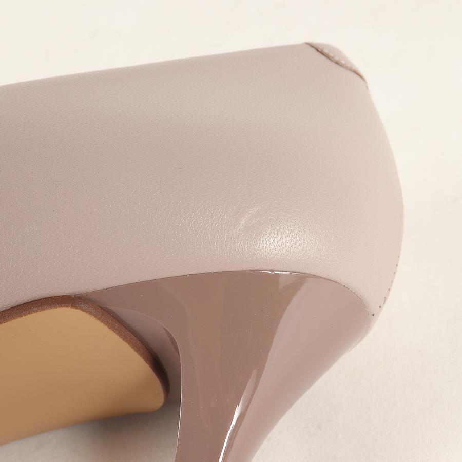 ・新品未使用品ですが、左足外側ヒール付近に薄く汚れ、右足内側に小さな凹みがございます。