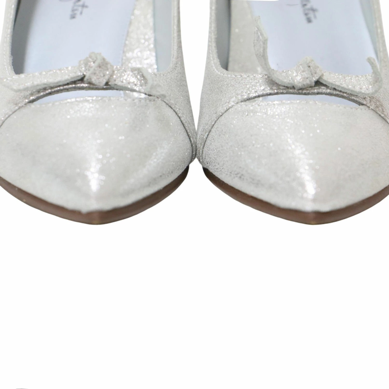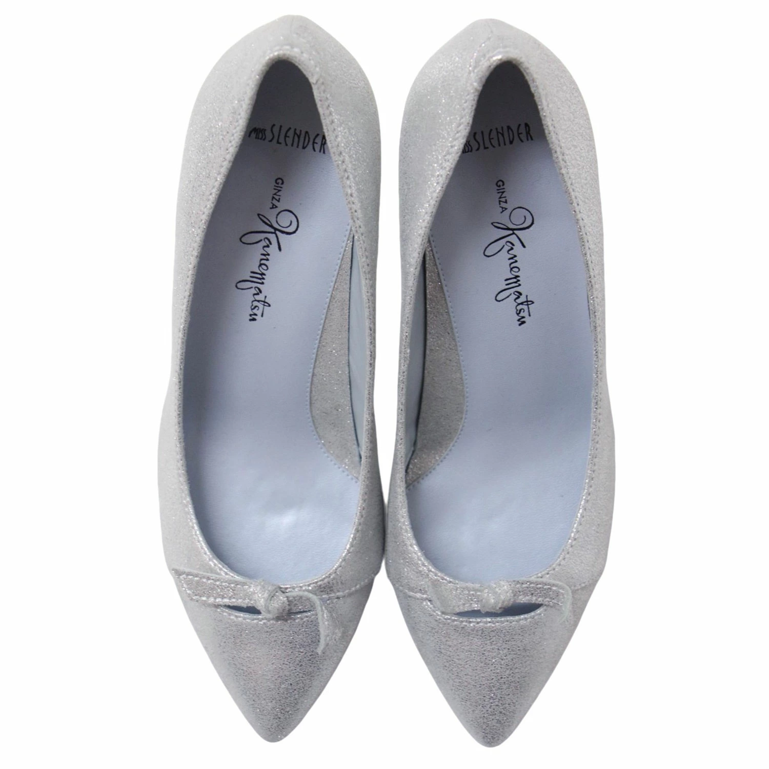 GINZA Kanematsu Silver Pointed-Toe Heel Pumps, Size 22.5cm, Metallic Ribbon, Made in Japan, Women's, Pre-owned, K4269