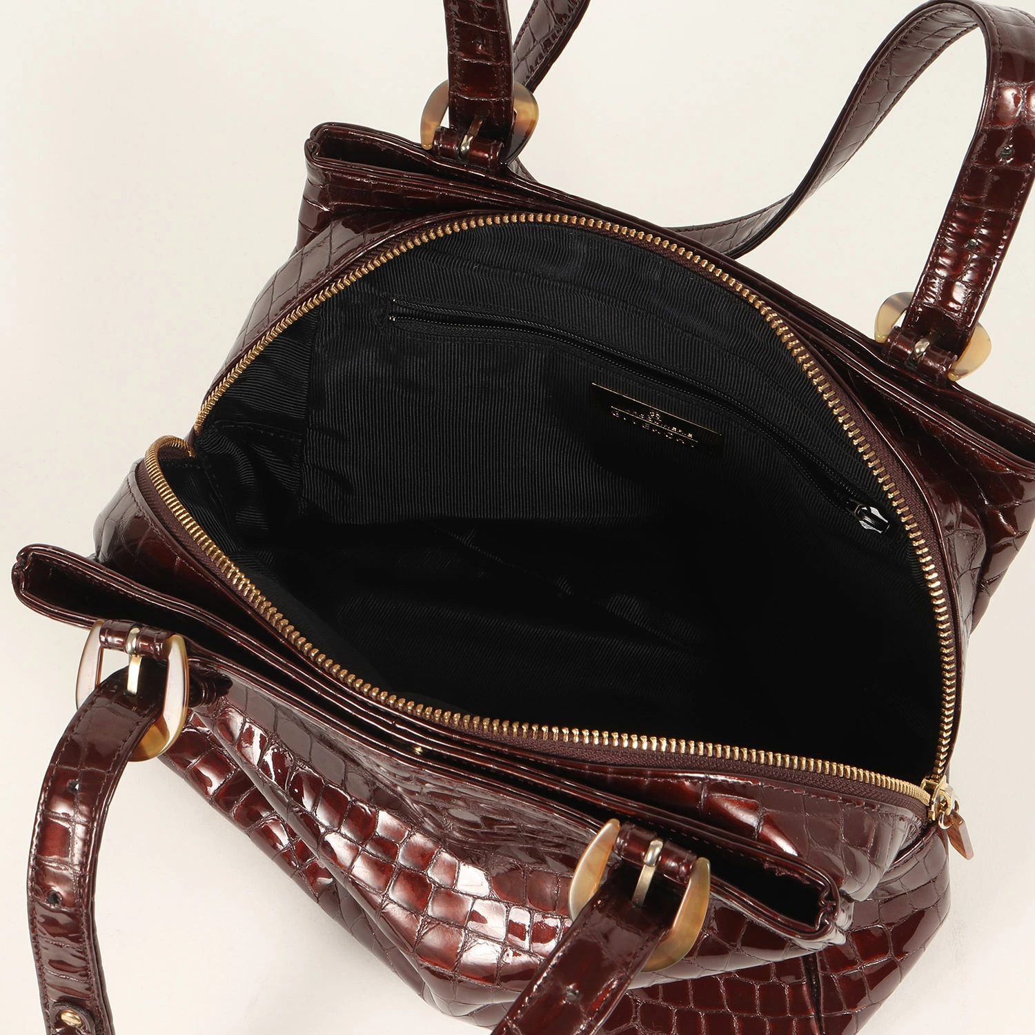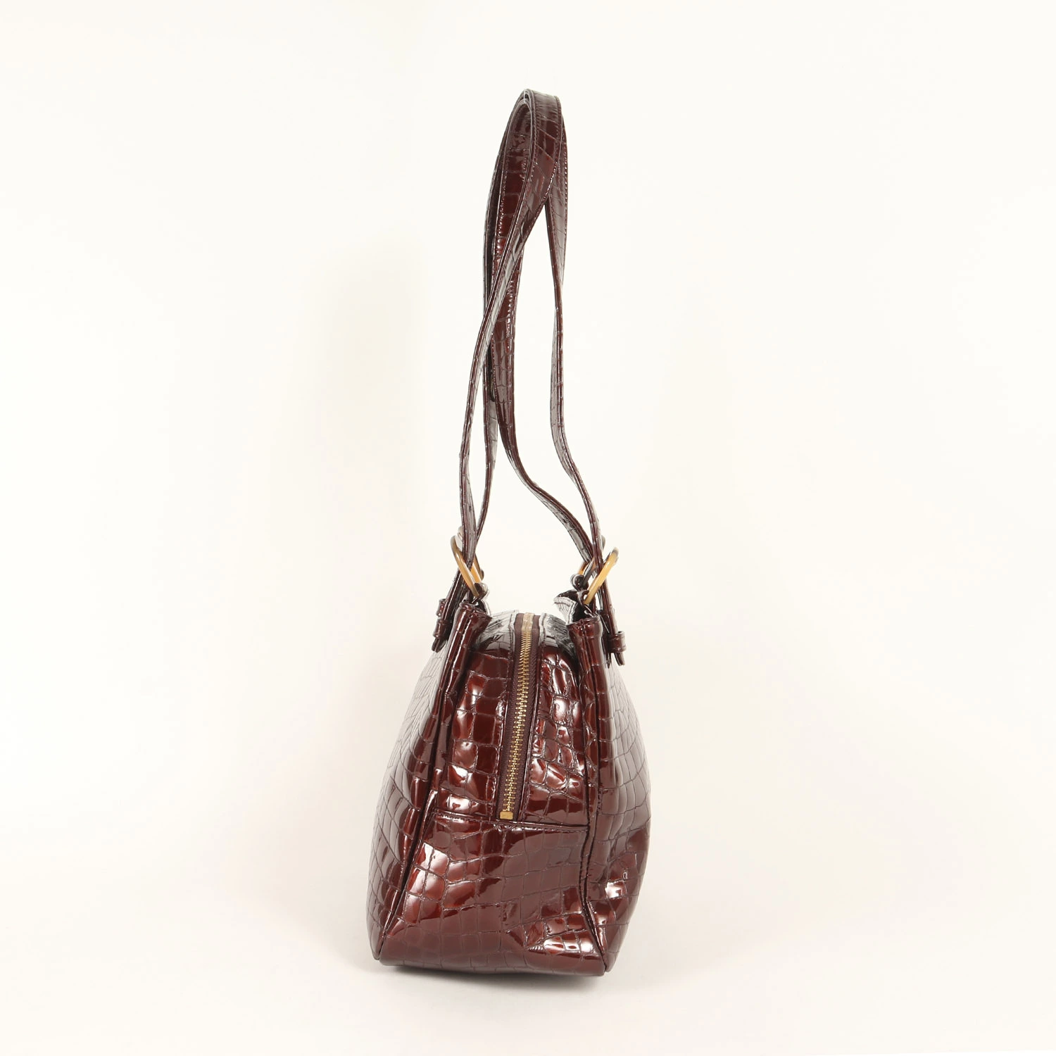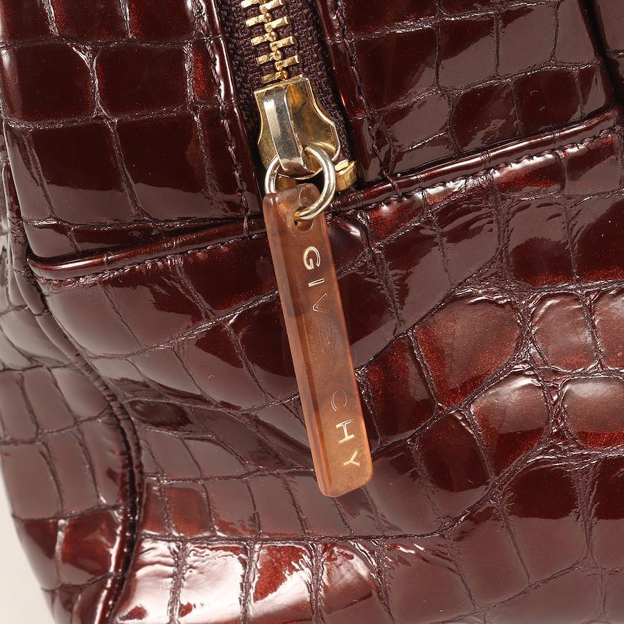 | 商品説明 | ・クロコダイル型押しのパテントレザー ・3部屋構造 |