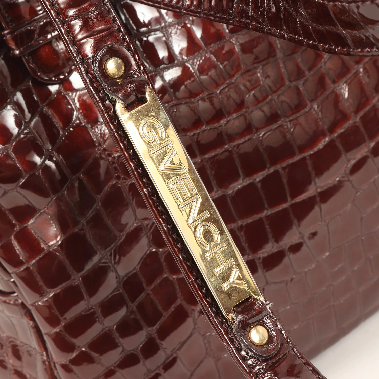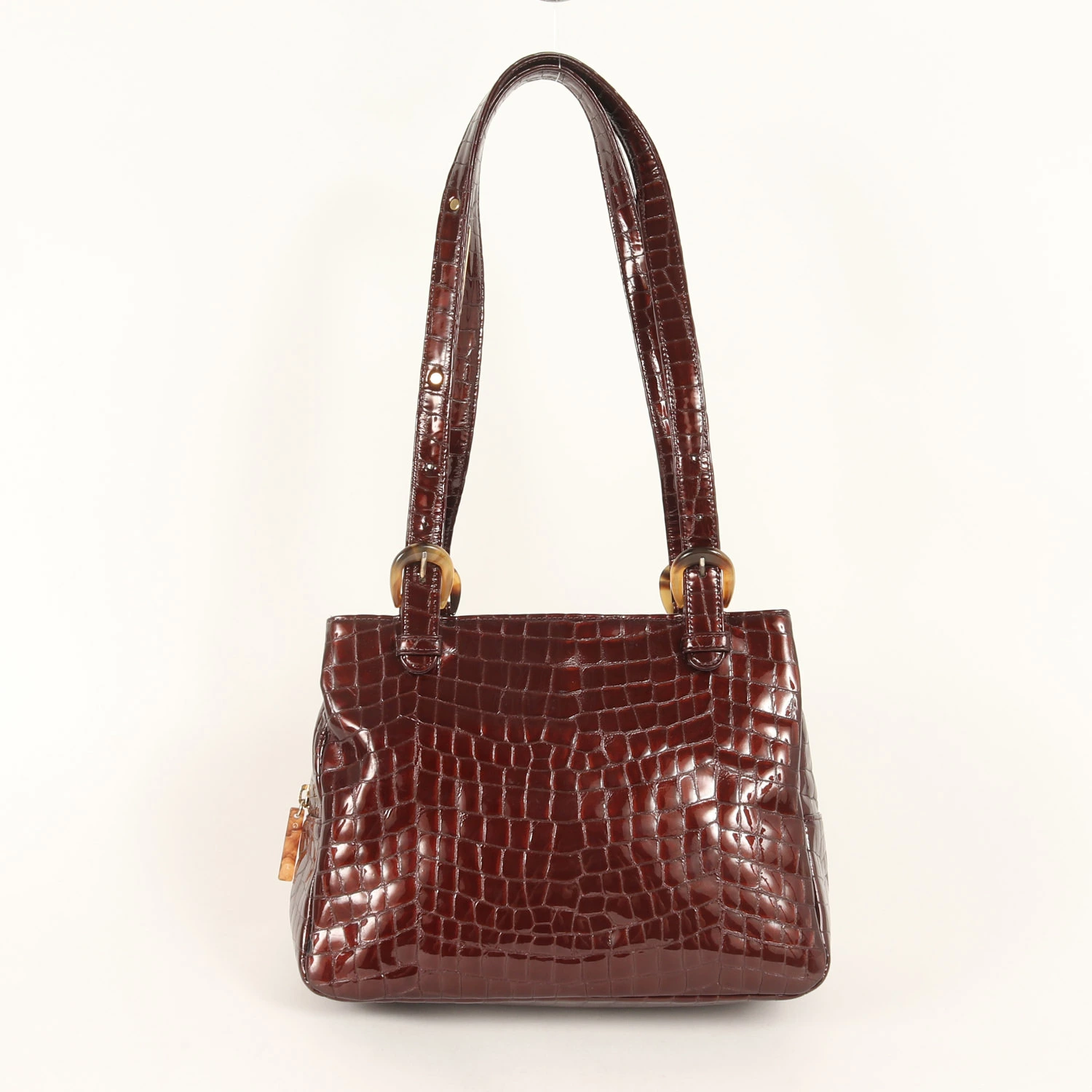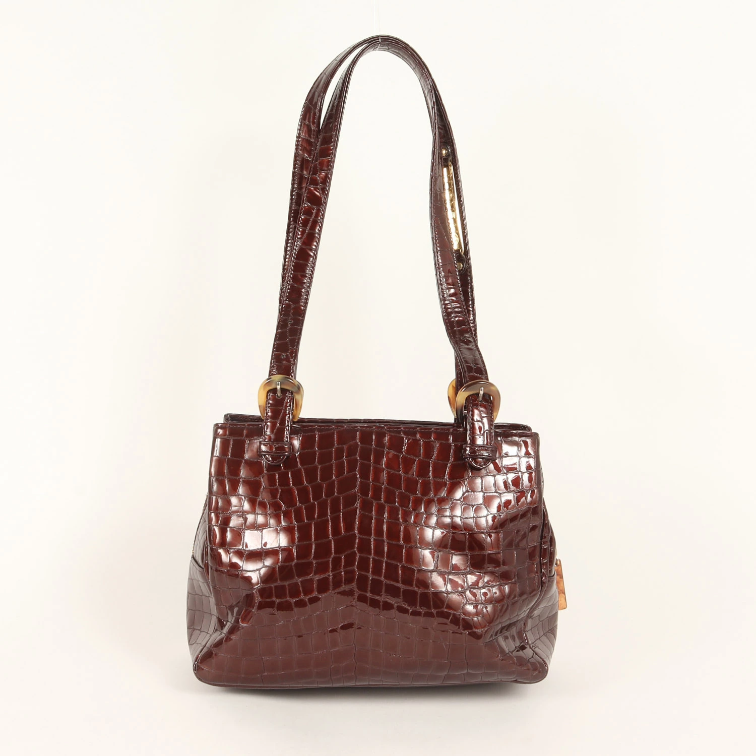 | 商品説明 | ・クロコダイル型押しのパテントレザー ・3部屋構造 |