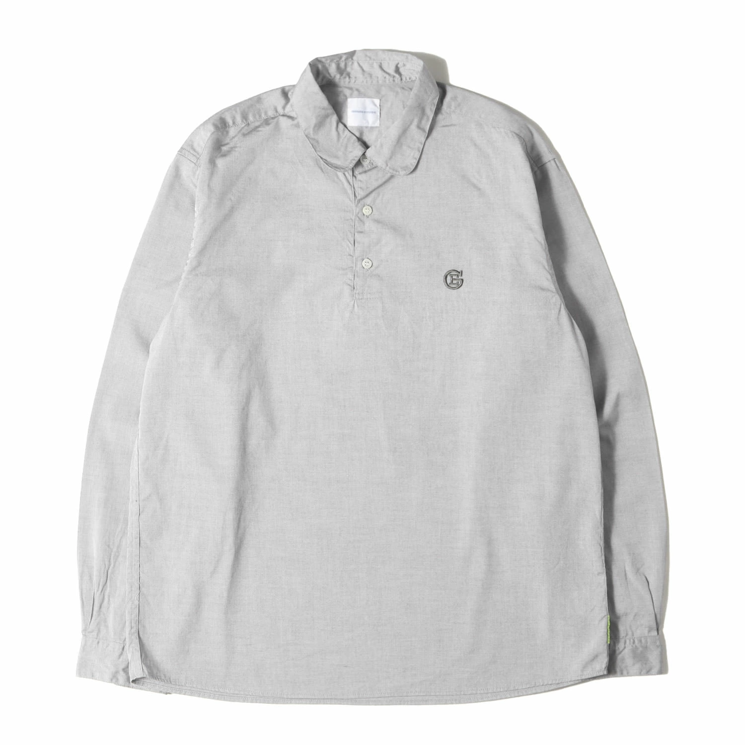 - 薄手で光沢感のあるオックスフォード生地を使用した、ラウンドカラータイプのハーフボタンプルオーバーシャツになります。