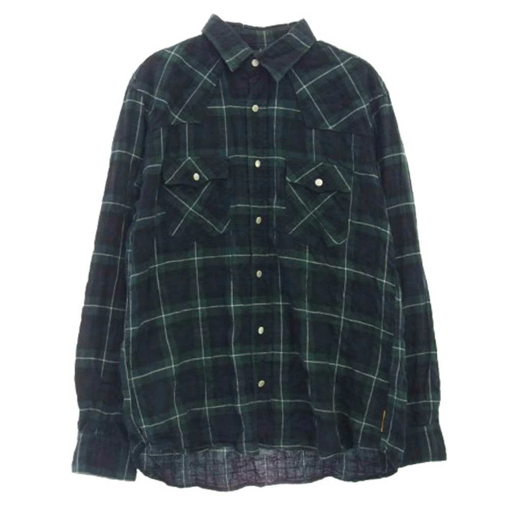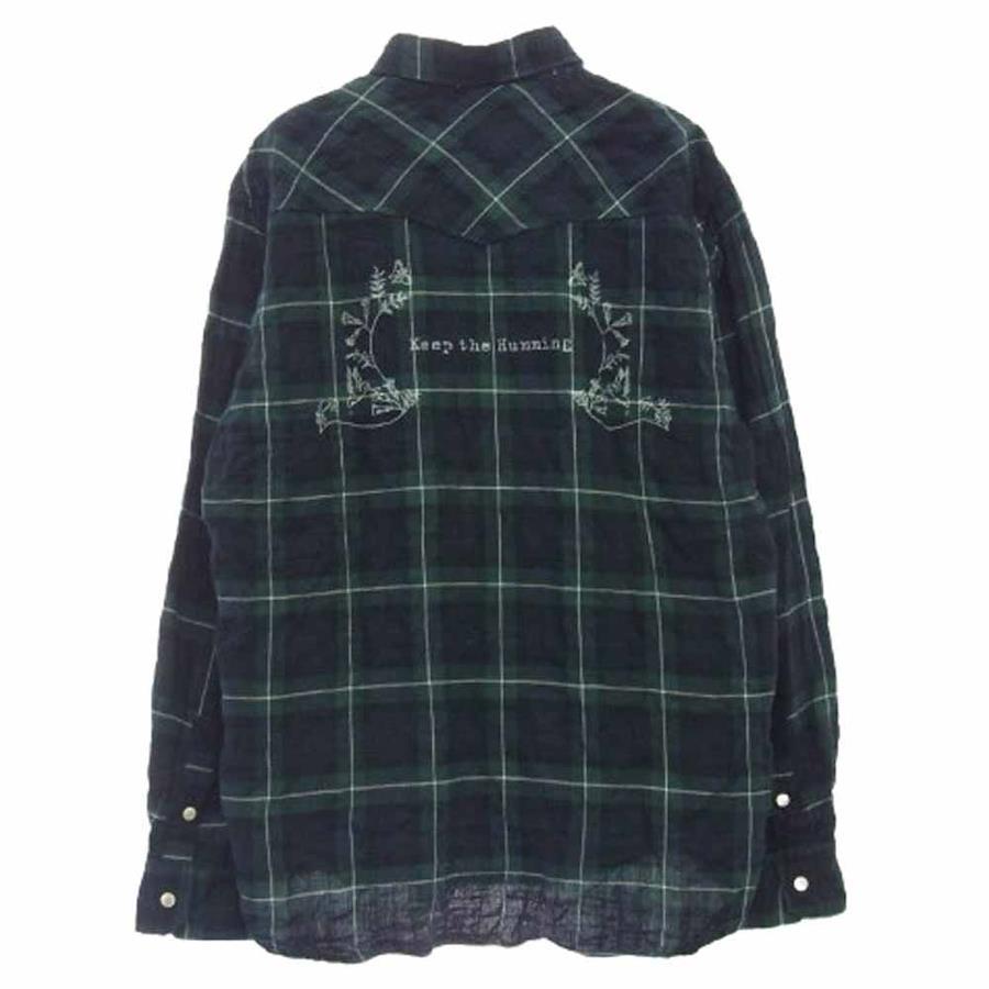 | 商品名 | シワ加工 背面メッセージプリント 長袖 ウェスタン チェック シャツ |