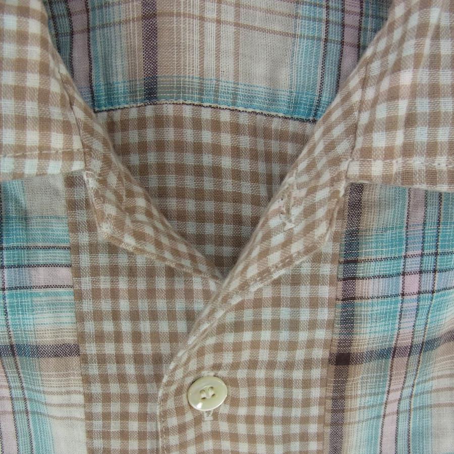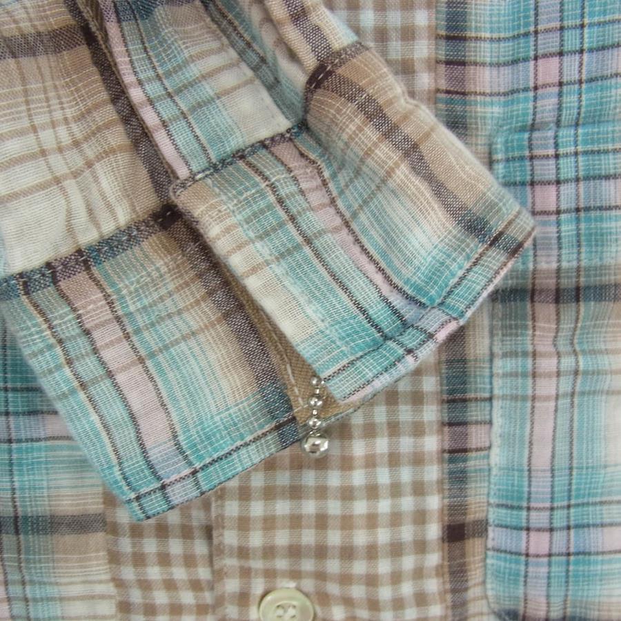 ライトブラウン系 x ライトブルー系【モデル】背ロゴ パッチワーク 長袖 シャツ