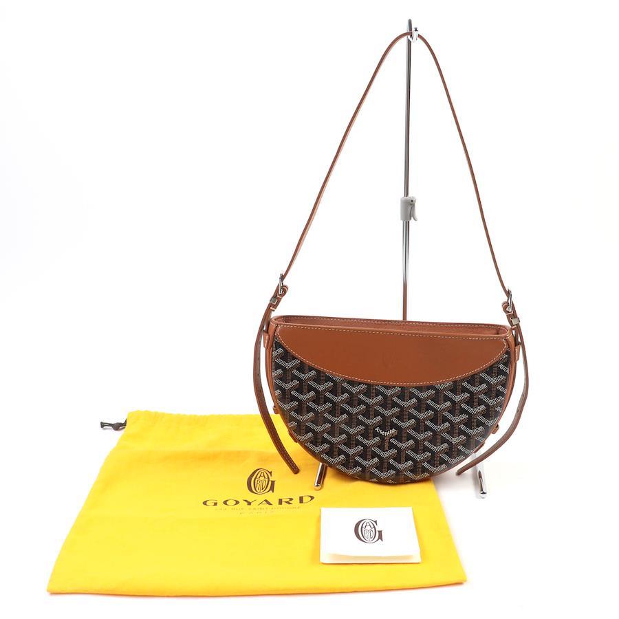 GOYARD Hirondelle Shoulder Bag with All-Over Logo Design in Black and Brown Goyardine Canvas