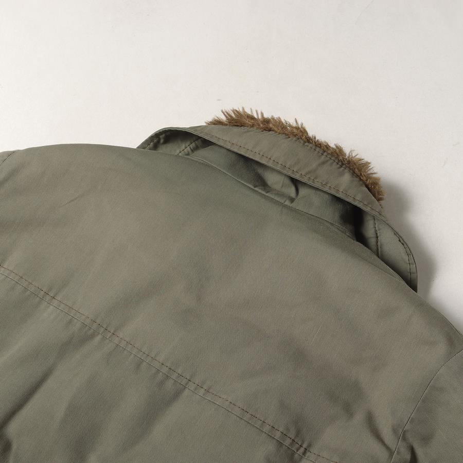 | 商品説明 | ・黒タグ ・表地 T/Cツイル生地 ・襟、身頃裏地 毛足の長いアクリルボア ・袖裏 キルティング ・フルジップ |