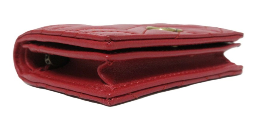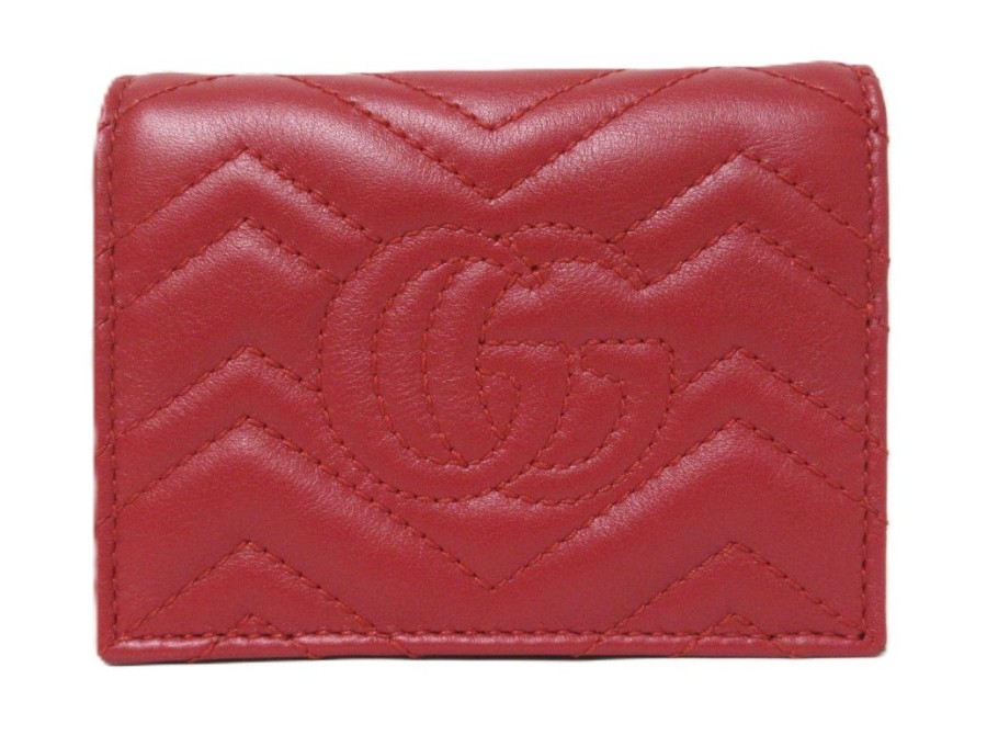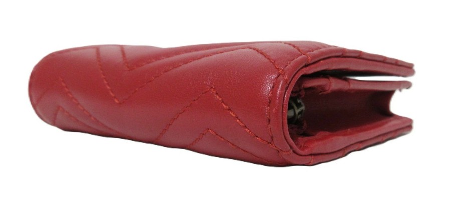 Vスティッチがスタイリッシュなデザインのグッチのコンパクトウォレットです。真っ赤なお色と正面のダブルG金具が高級感があります。コンパクトサイズなので小さなポシェットやポケットなどにも収納しやすくて便利です。使い込むほどに味が出る上質レザーが魅力の財布です。