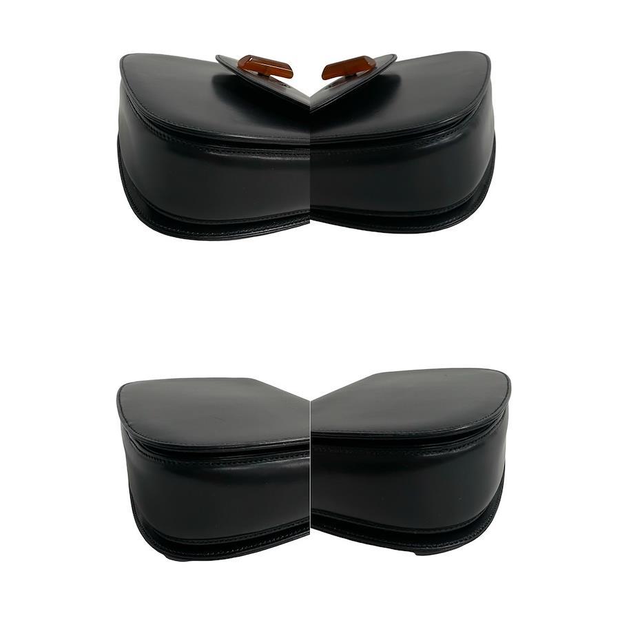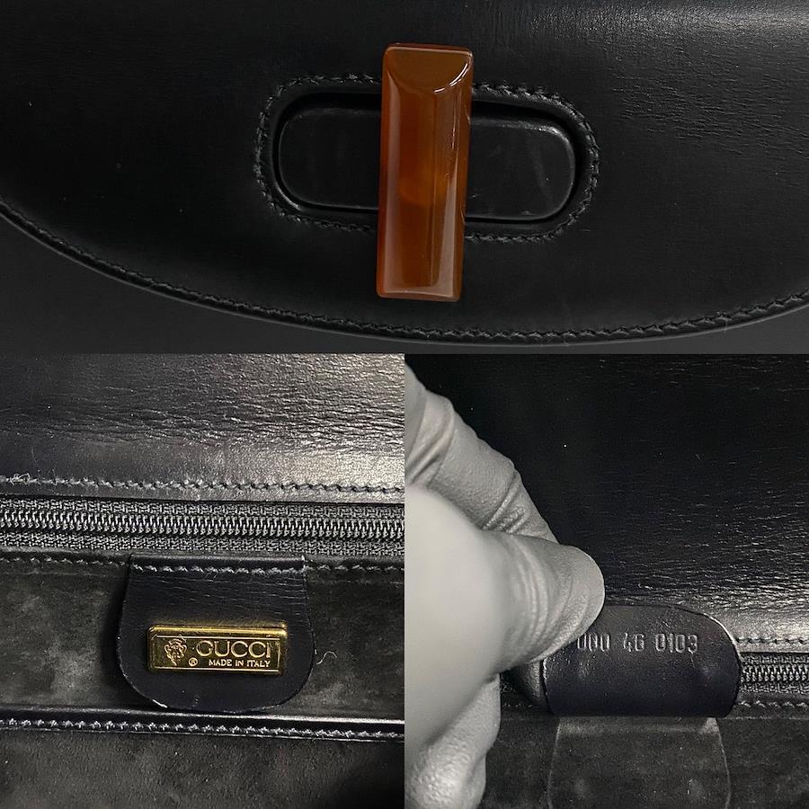 GUCCI Old Gucci Vintage Turnlock Leather Genuine Leather Handbag Mini Tote Bag Black 41525