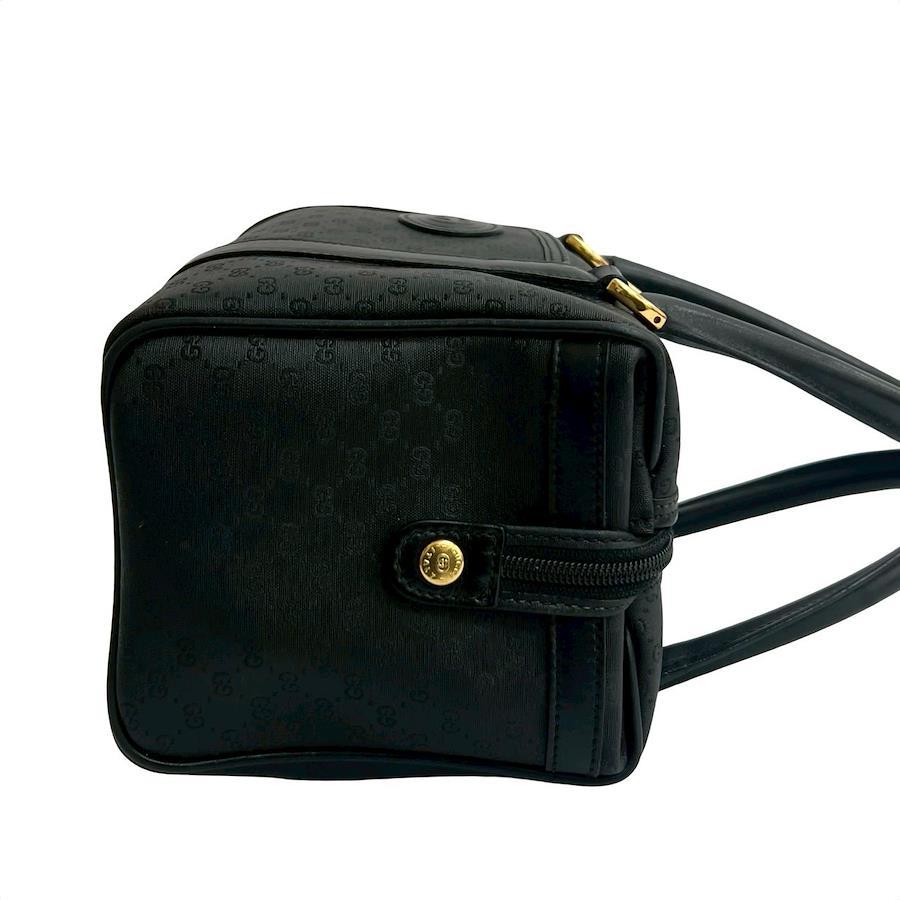 GUCCI Vintage Micro GG Logo Leather Handbag/Mini Boston Bag in Black (59840)